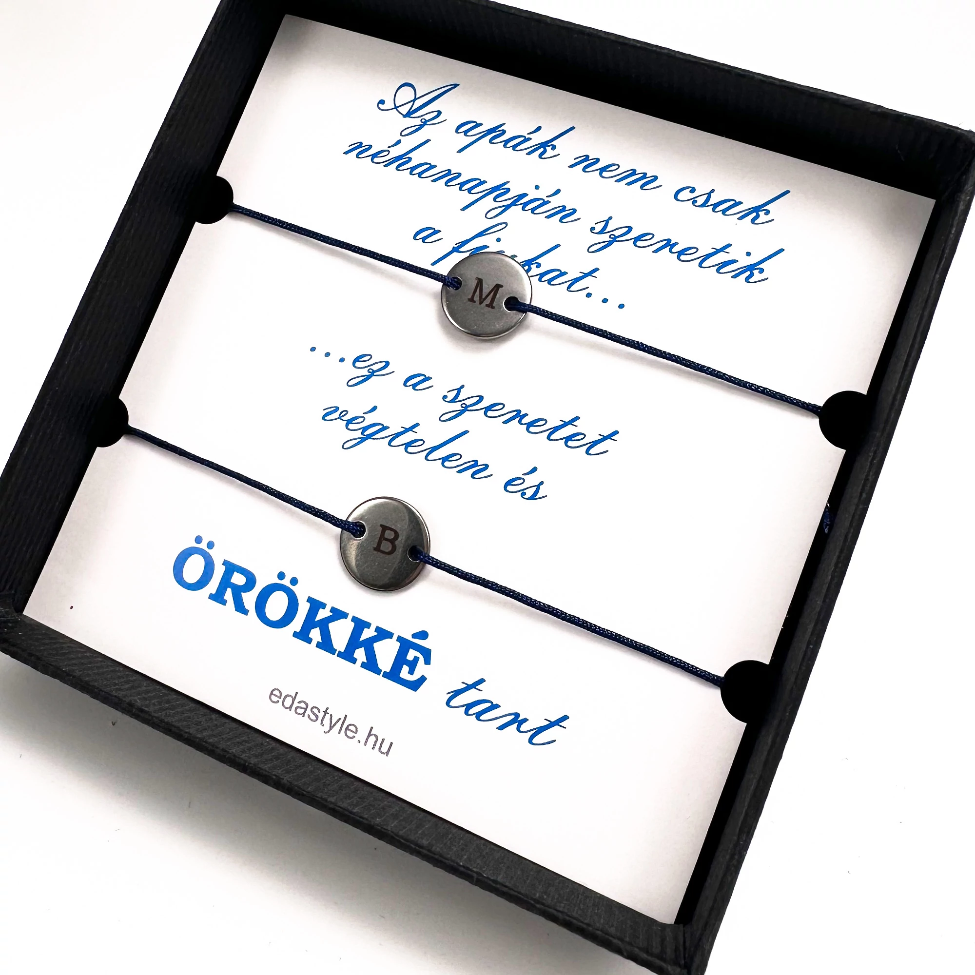 Apa-Fia zsineg karkötő gravírozható kör medállal Kék