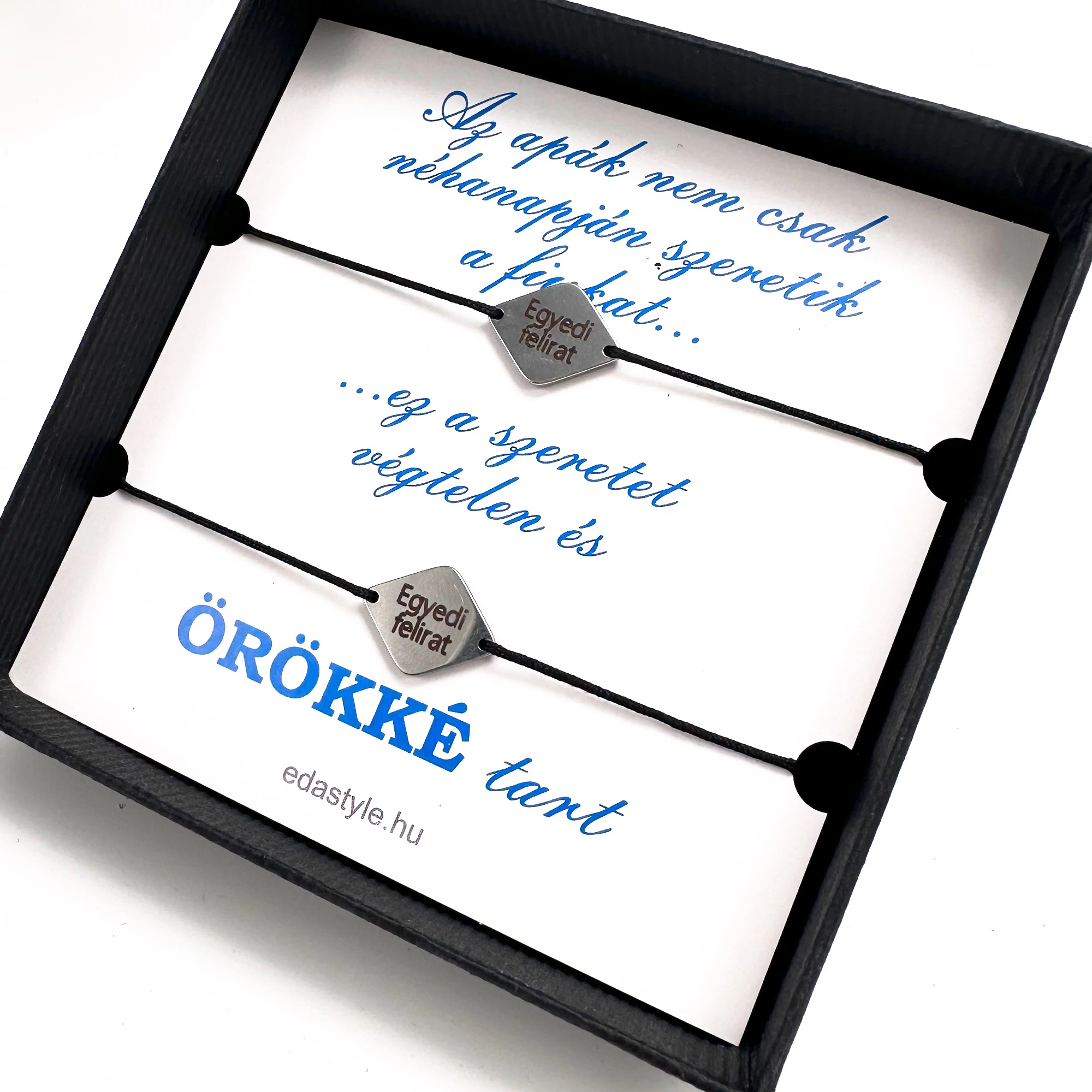 Apa-Fia zsineg karkötő gravirozható rombusz medállal Fekete