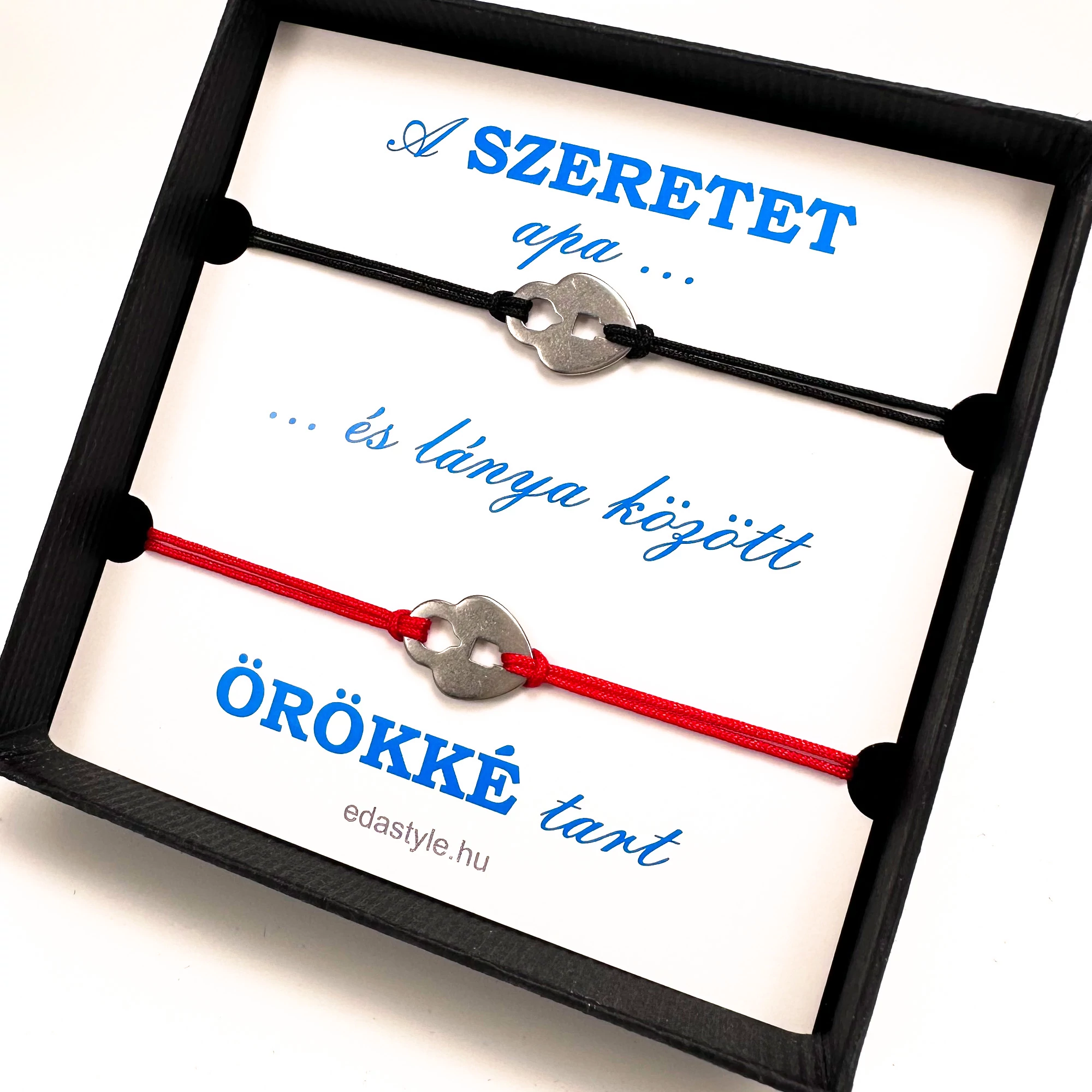 Apa-Lánya zsineg karkötő lakat medállal Piros-Fekete