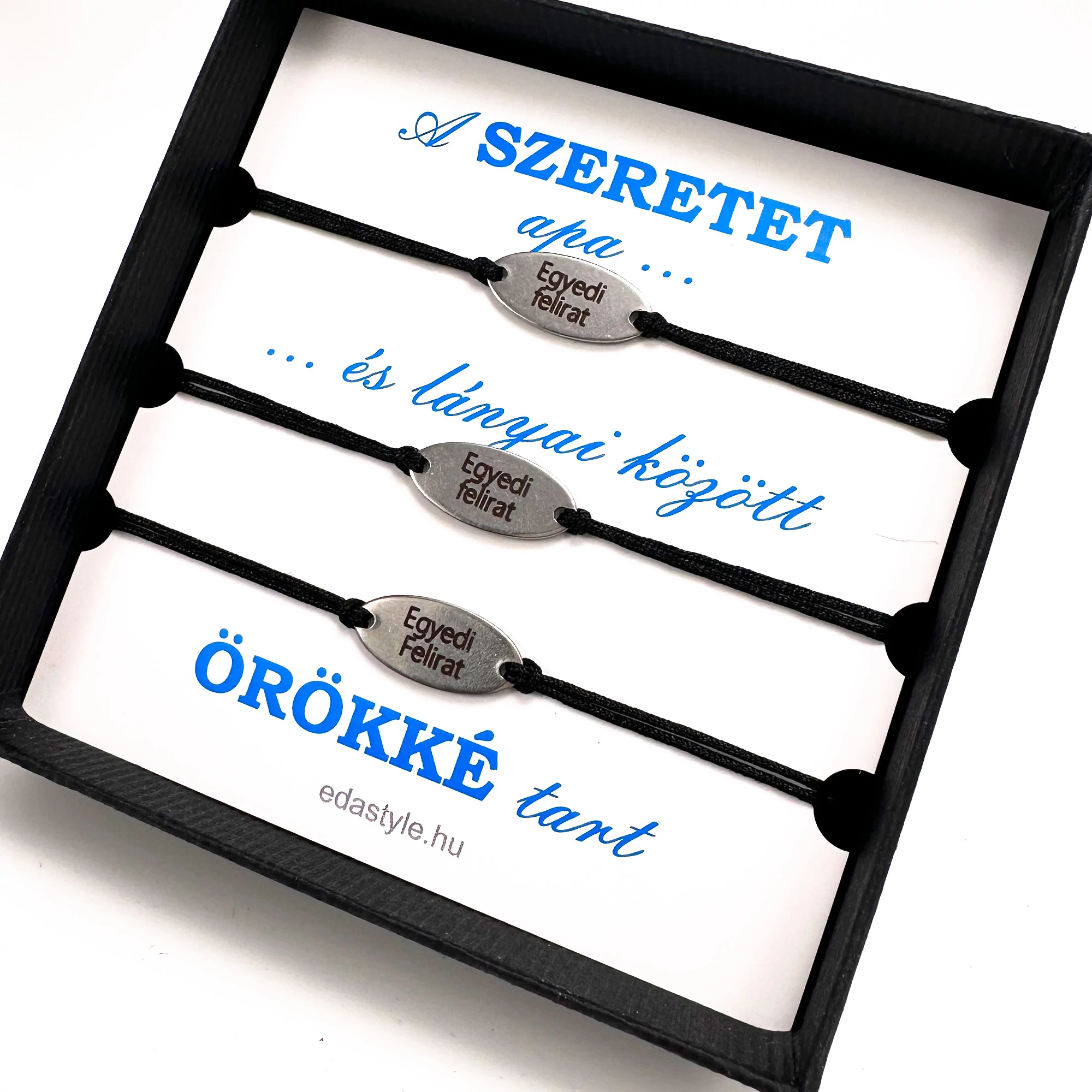 Apa-Lányai zsineg karkötő gravirozható ovál medállal Fekete