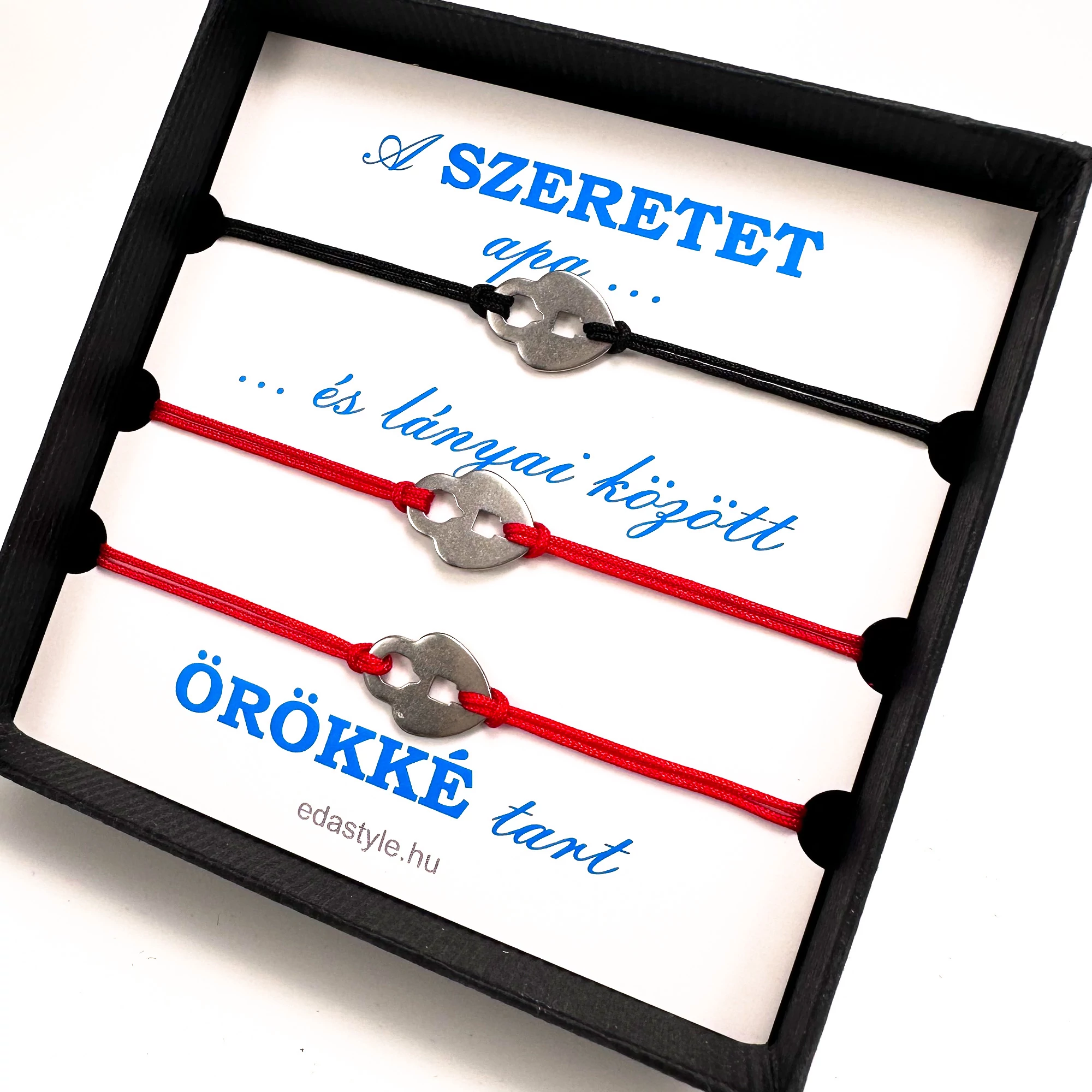 Apa-Lányai zsineg karkötő lakat medállal Fekete-Prios