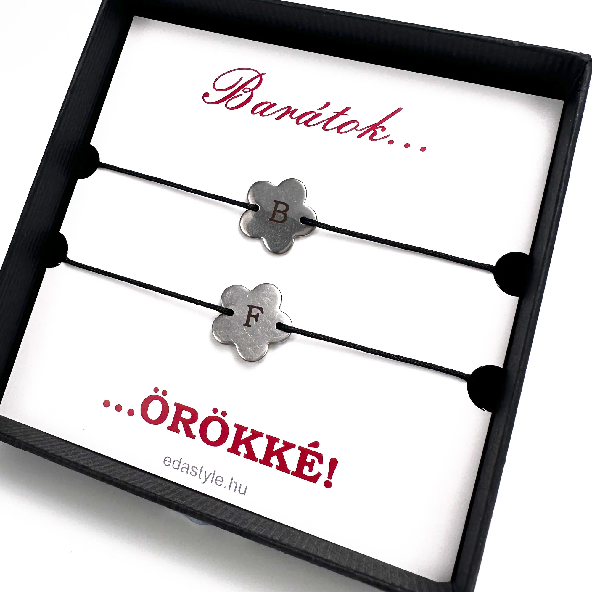 Barátság karkötő EGYEDI gravírozott virág medállal fekete