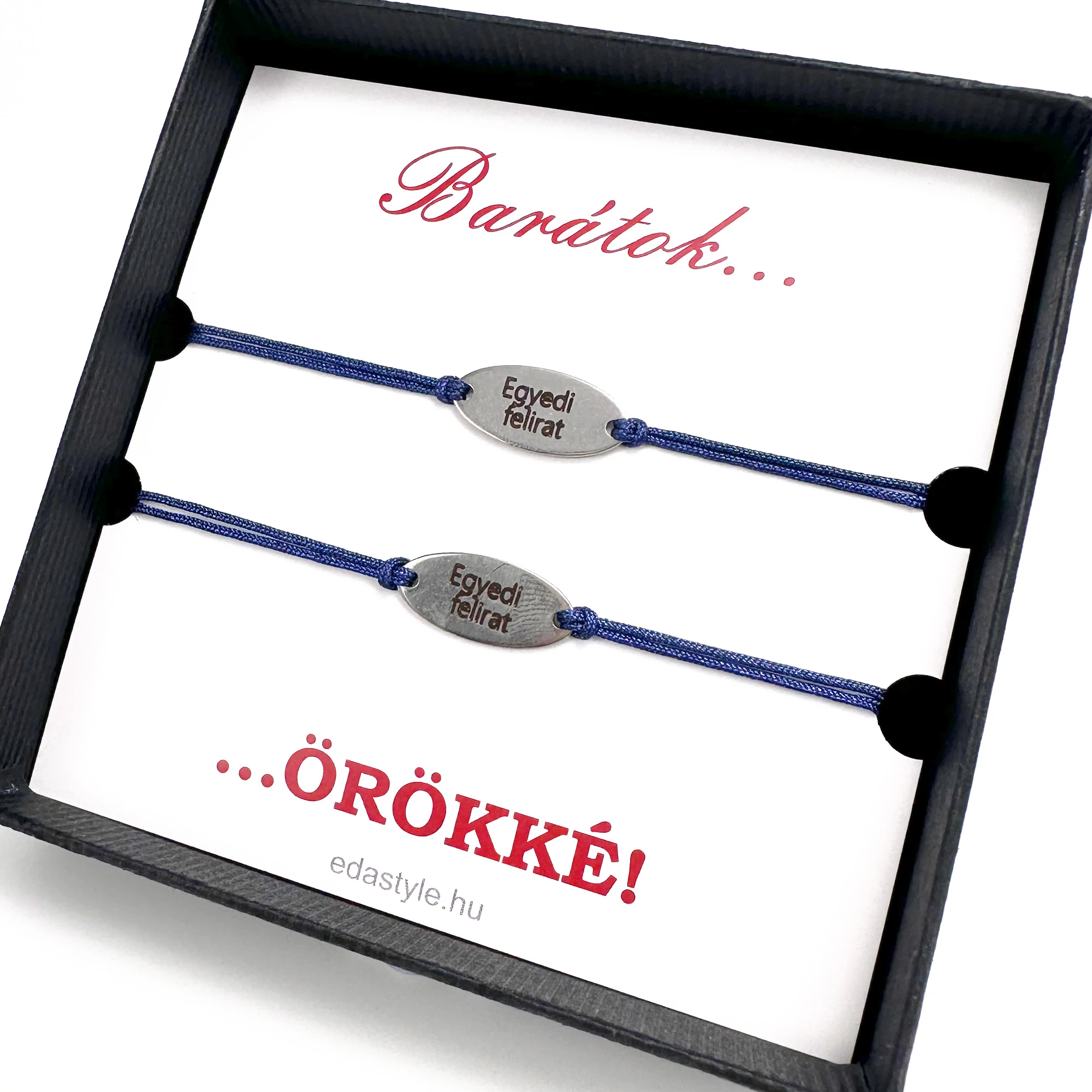 Barátság karkötő EGYEDI gravírozott ovál medállal kék