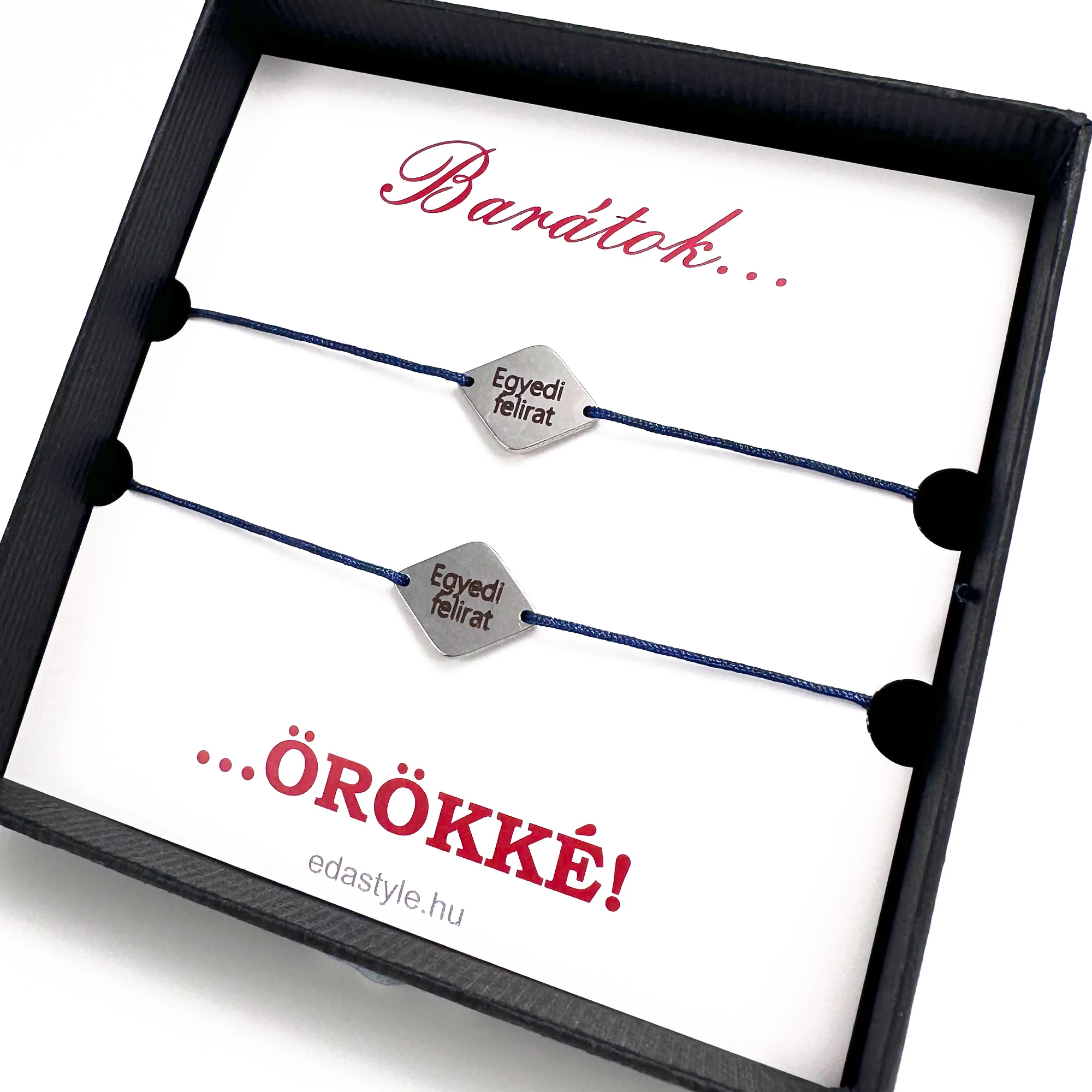 Barátság karkötő EGYEDI gravírozott rombusz medállal kék