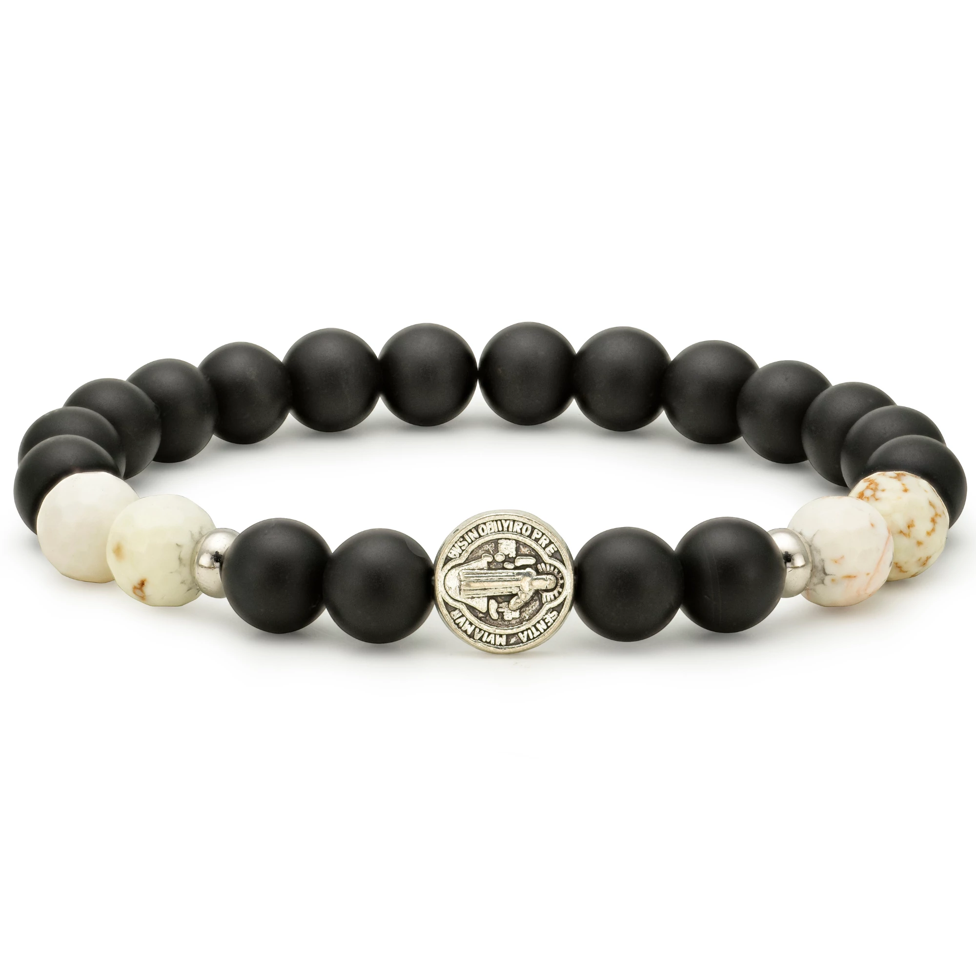 A karkötőben lévő Szent Benedek medál, védelmet nyújt számodra , a negatív gondolatokkal és energiákkal szemben. Visszafordítja a rosszindulatot és az átkokat. Az ékszer természetes gyöngyökből kézzel készül, így mintázatuk, színük minimálisan eltérő lehet, a kép csak illusztráció. A karkötők méretét az alábbiak szerint válaszd ki a listából: Mérd meg a csuklód szorosan, és a kapott mérethez adj 1cm-t. Pl: ha a csuklód mérete 16cm, akkor neked 17cm a karkötő méreted.