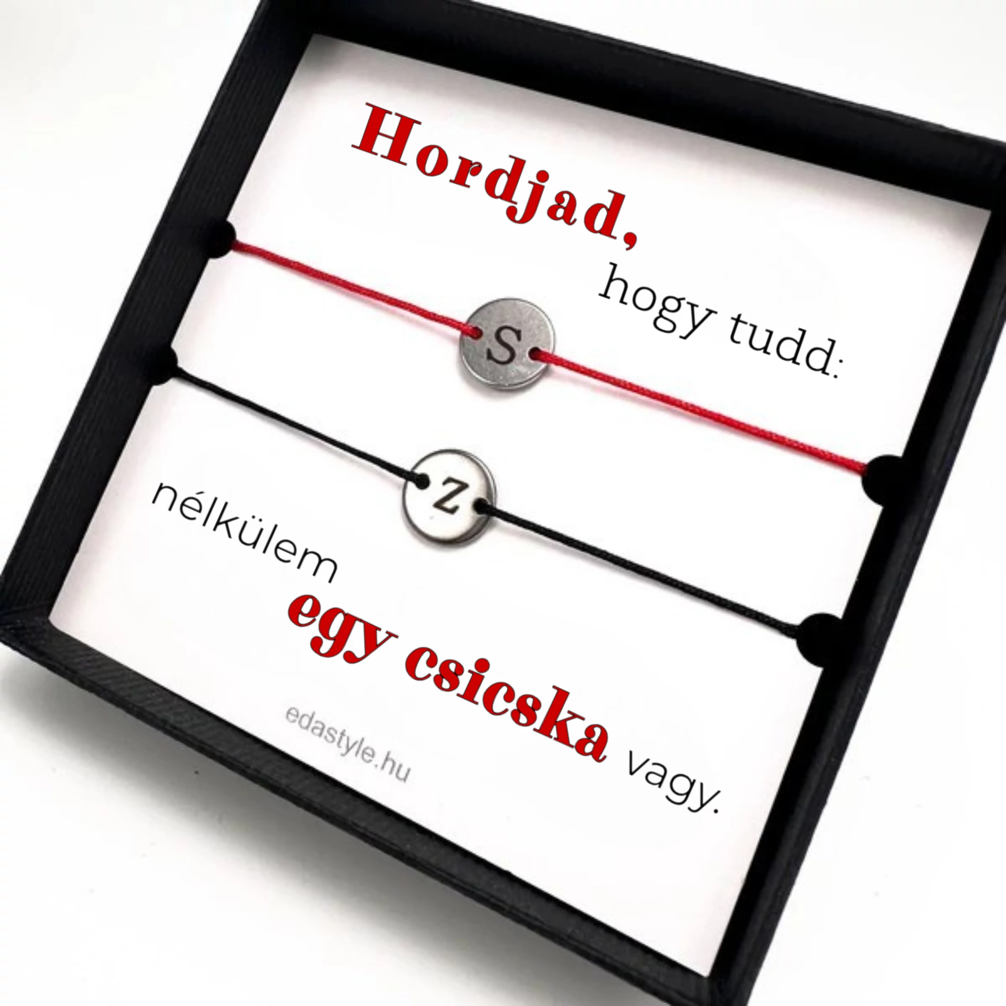 Csicska vagy Páros karkötő EGYEDI gravírozható kör medállal Fekete-Piros