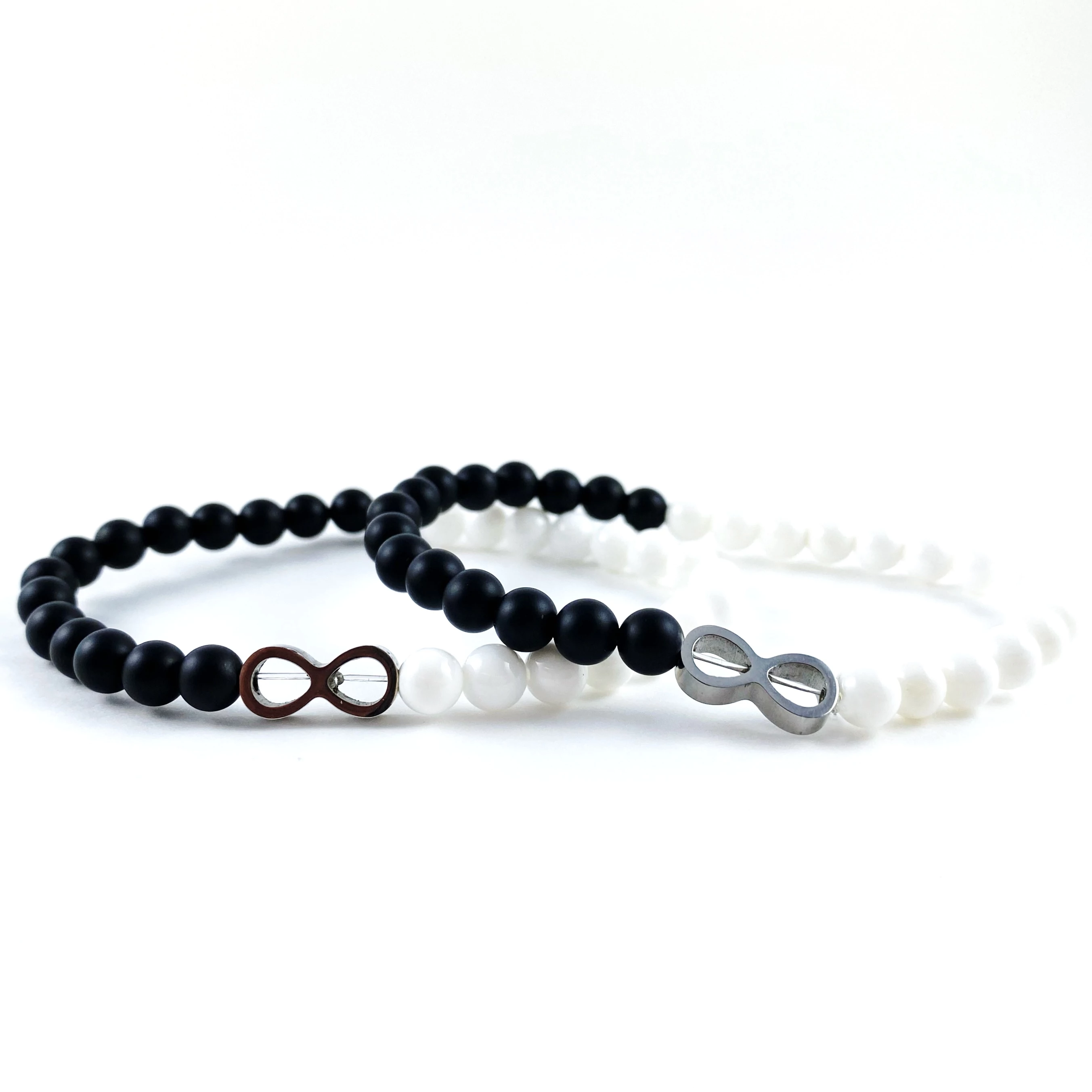 Ezüst végtelen jeles Jin-jang ónix és gyöngyház páros karkötő