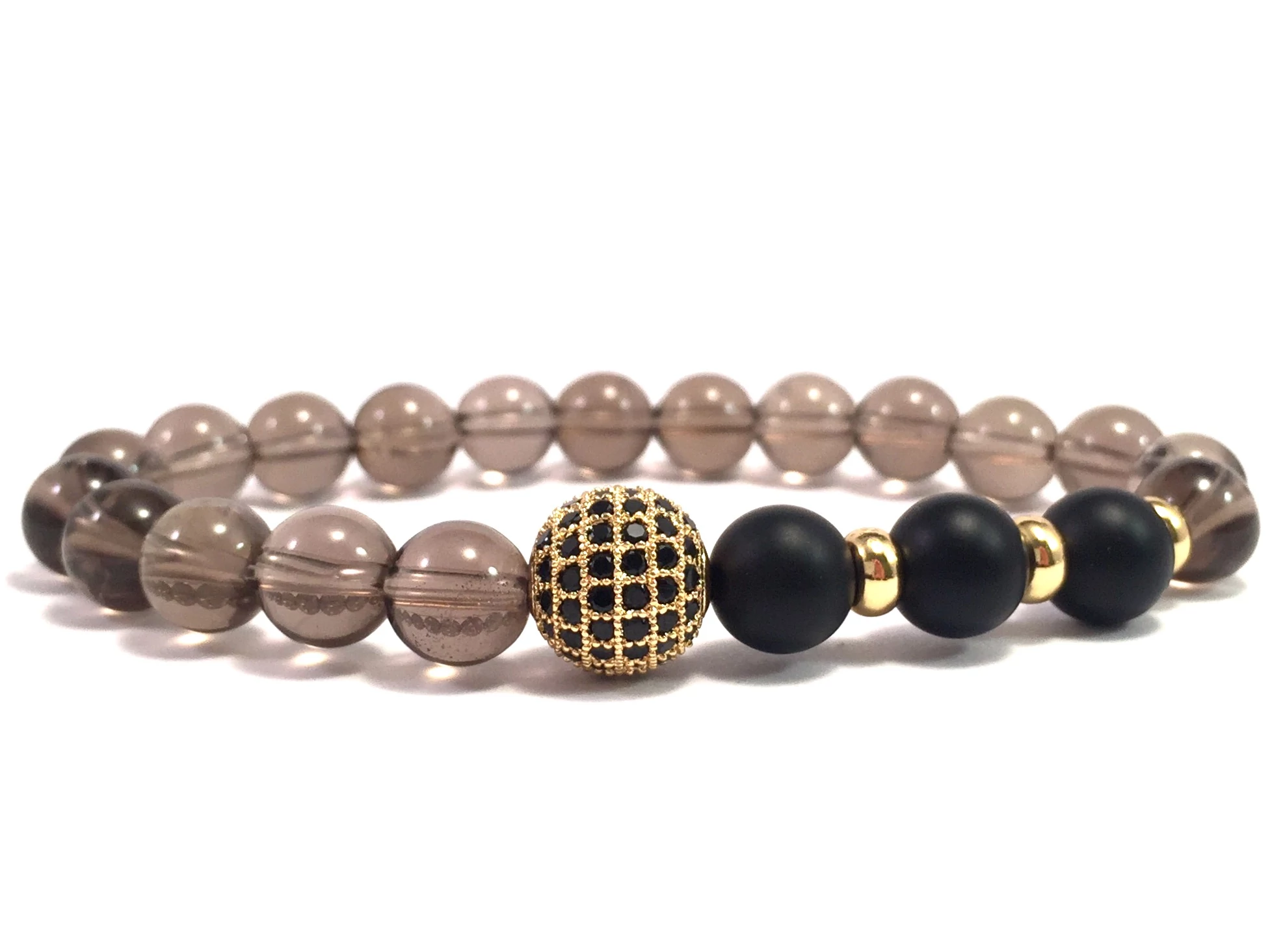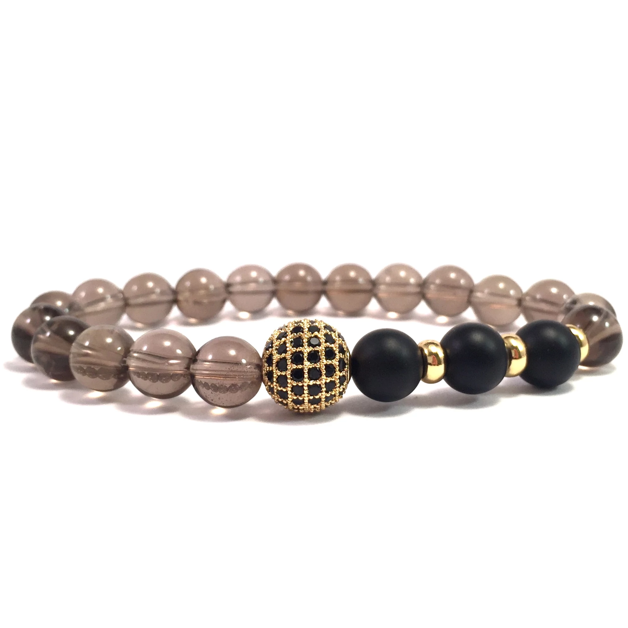 Füstkvarc és matt ónix arany cirkon labdás karkötő