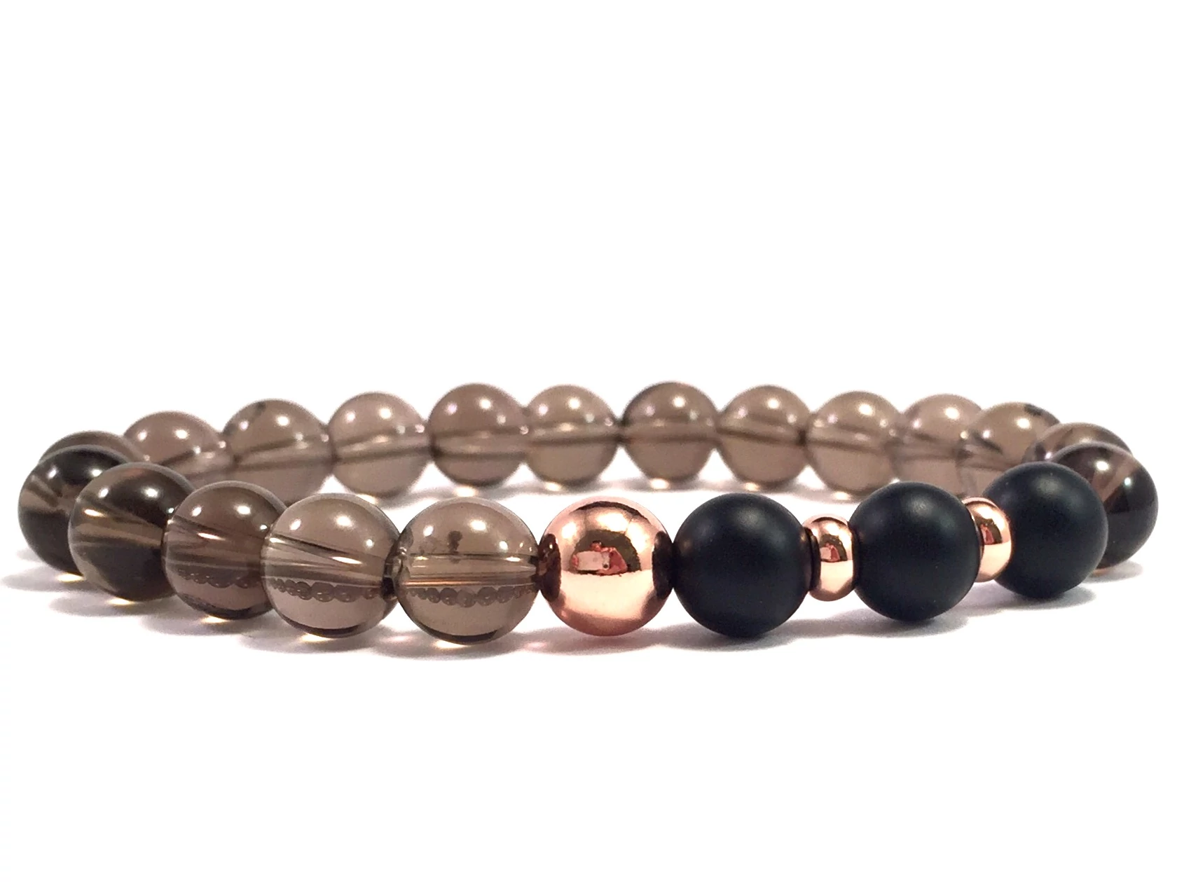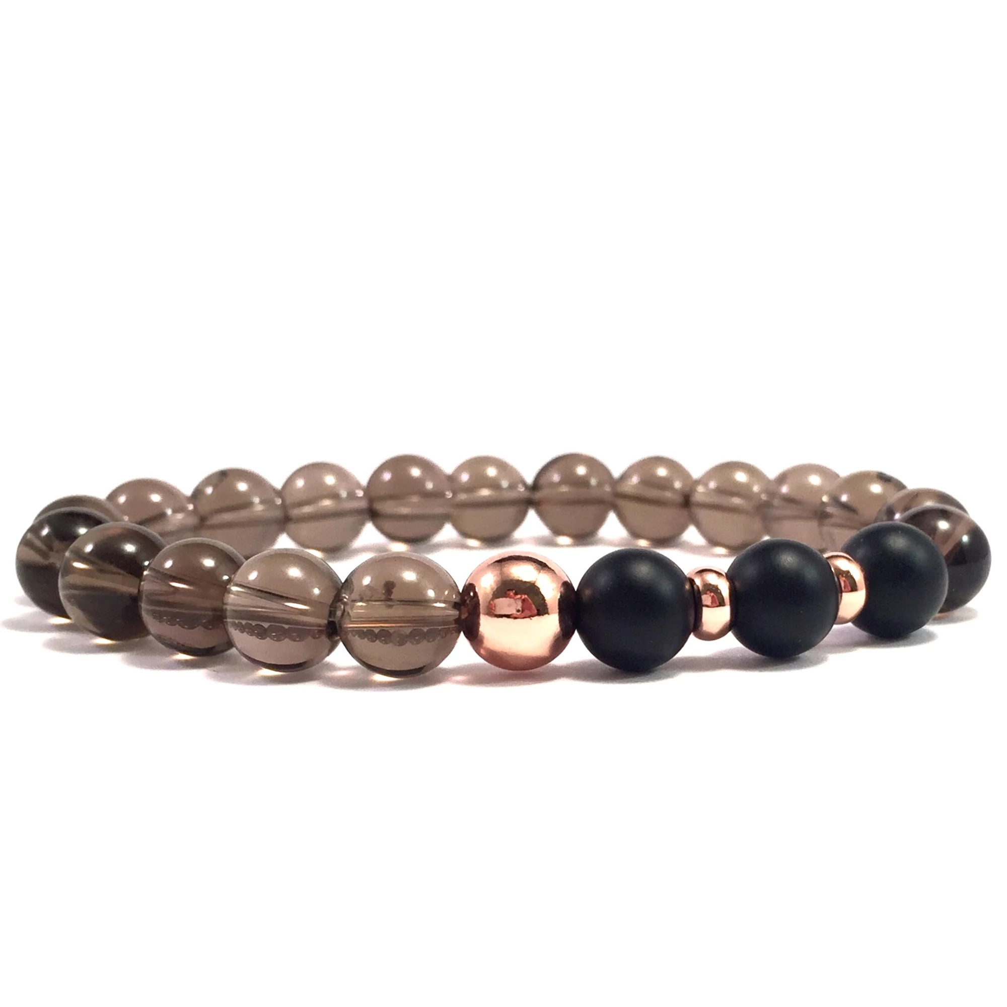 Füstkvarc és matt ónix rozé gyöngy karkötő