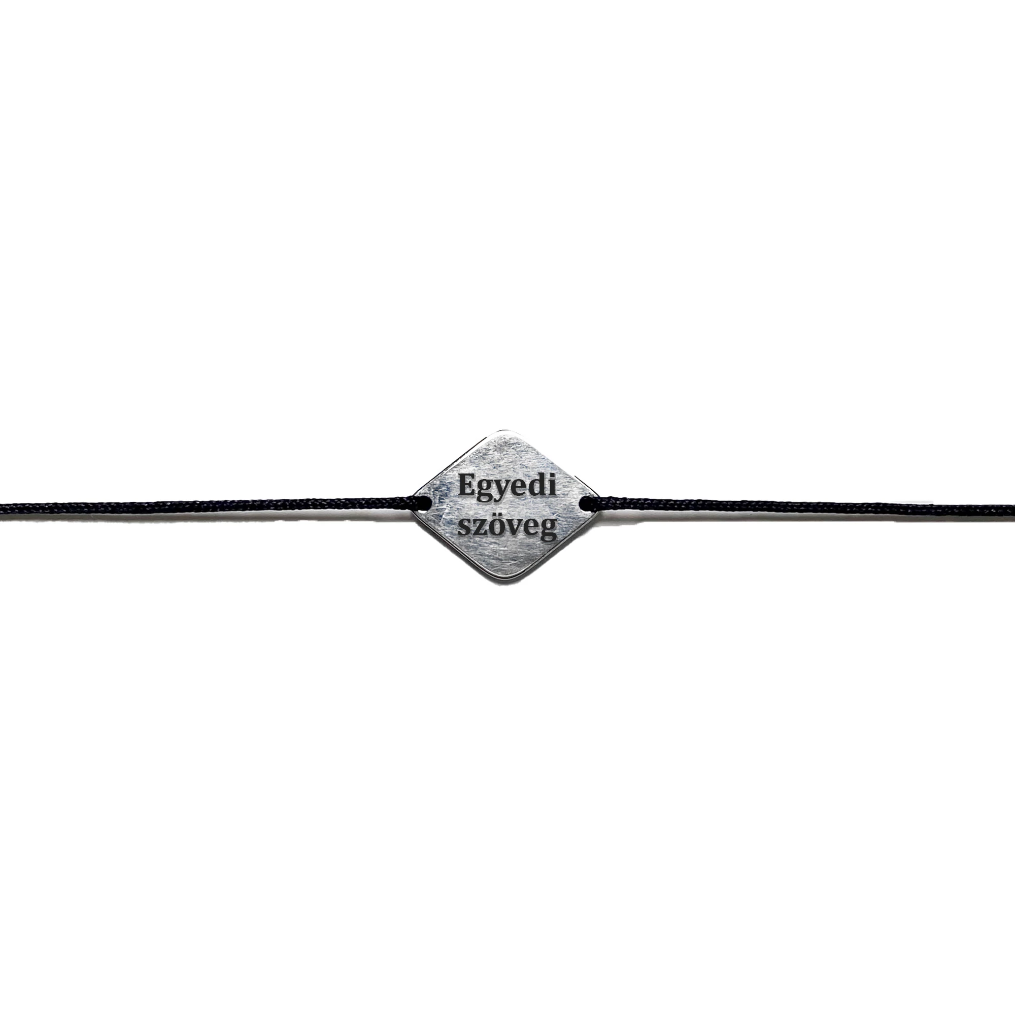Gravírozott rombusz medálos fekete zsineg karkötő