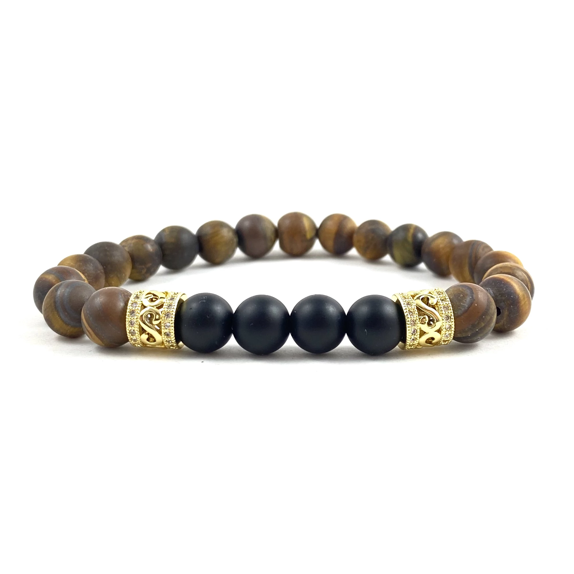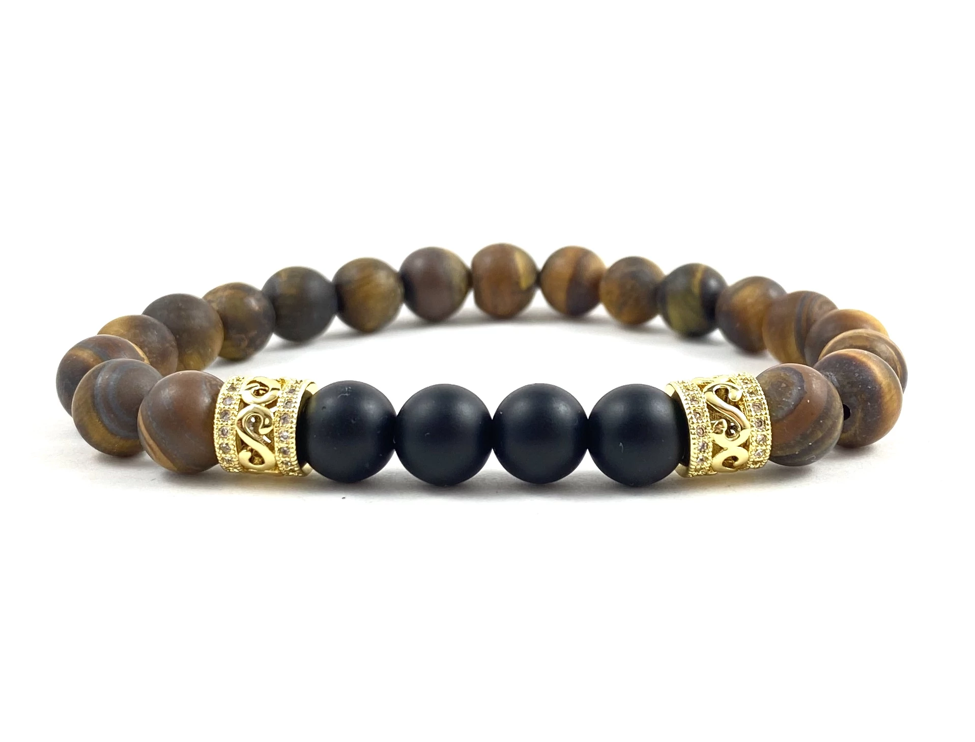 Matt tigrisszem és matt ónix arany gyűrűs férfi karkötő
