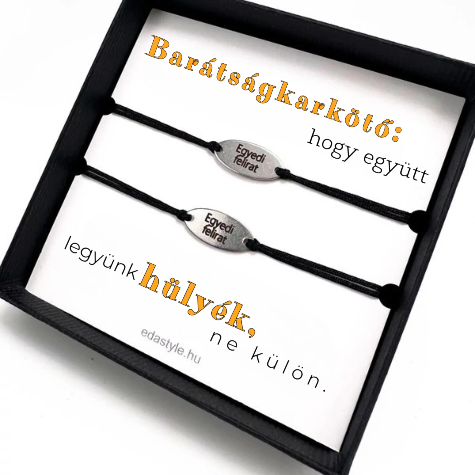 Hülyék Páros karkötő EGYEDI gravírozott ovál medállal Fekete