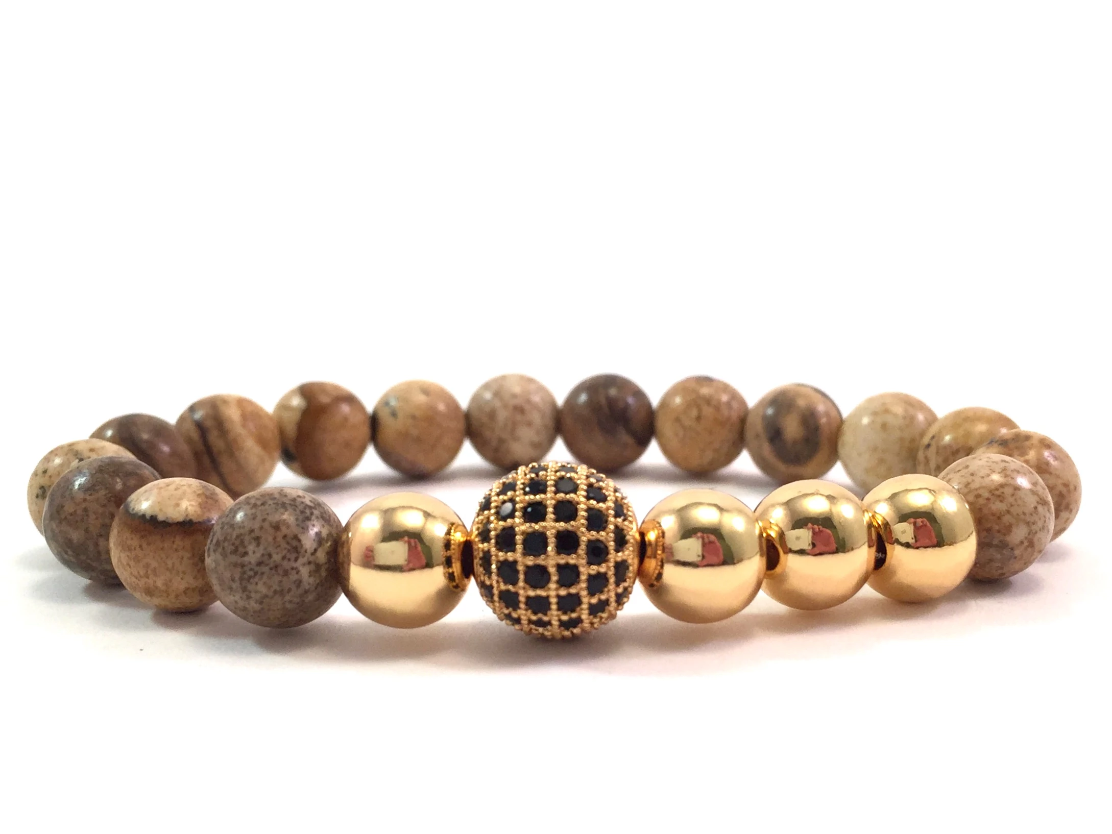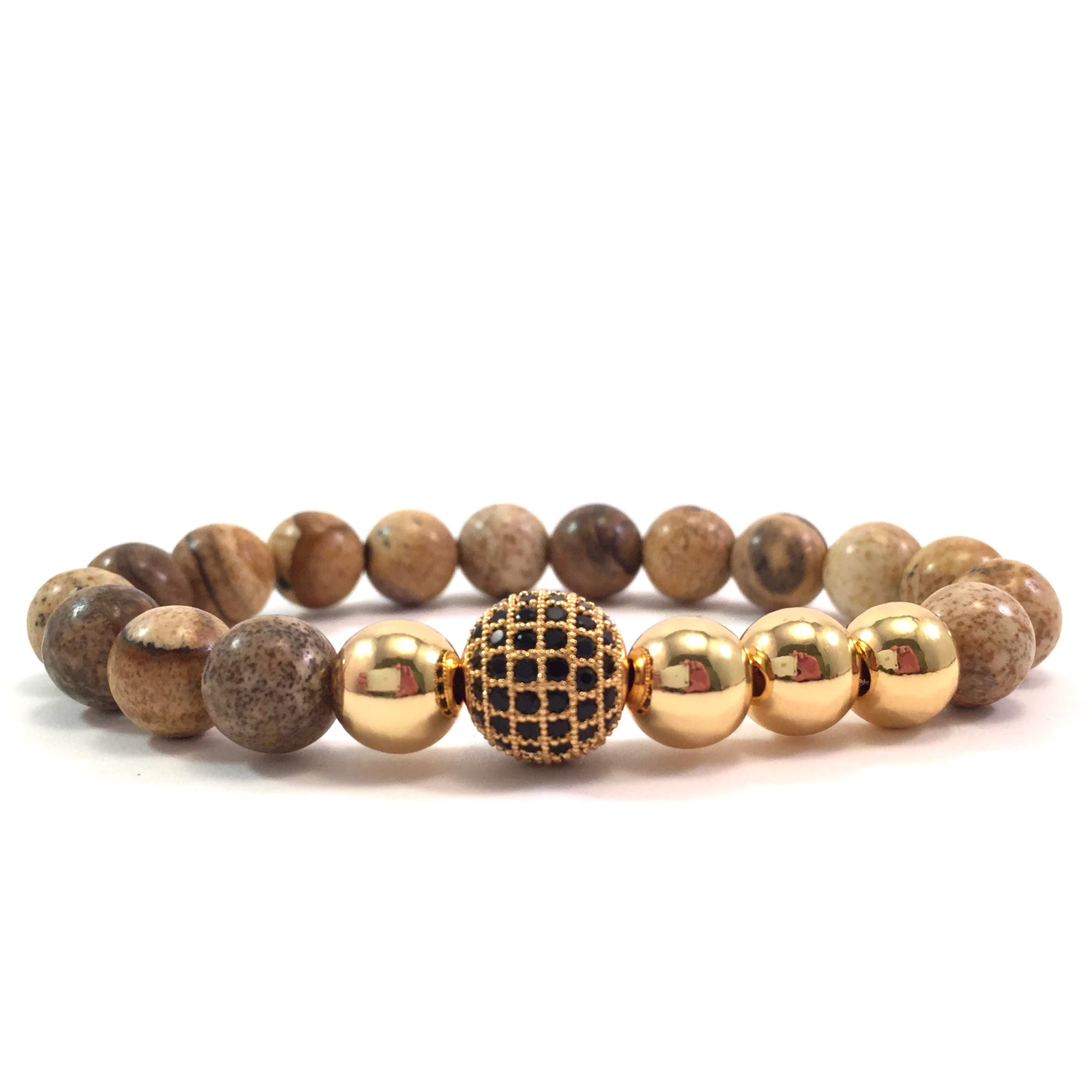 Jáspis arany gyöngy és cirkon labdás karkötő