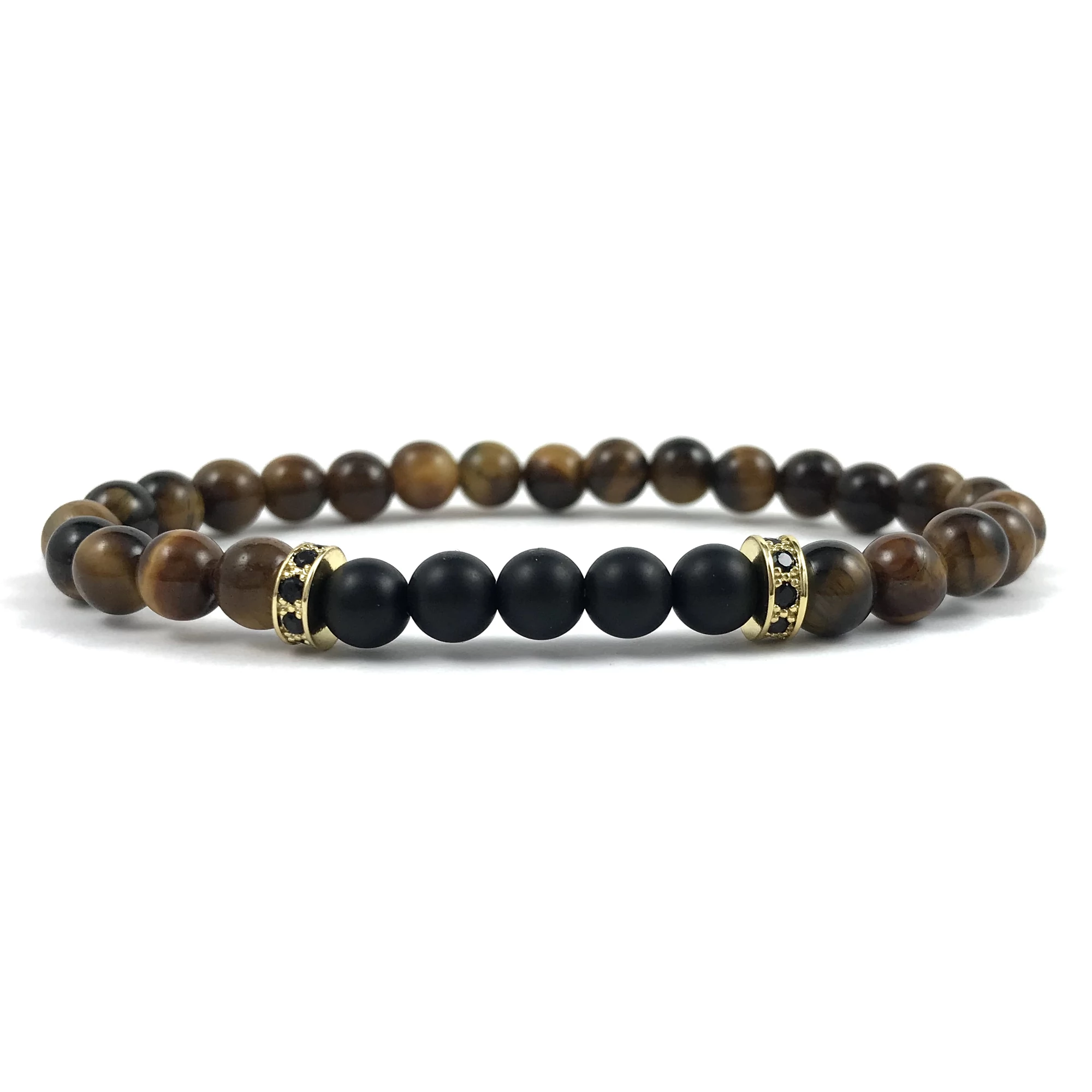 Tigrisszem és matt ónix arany rondeles karkötő