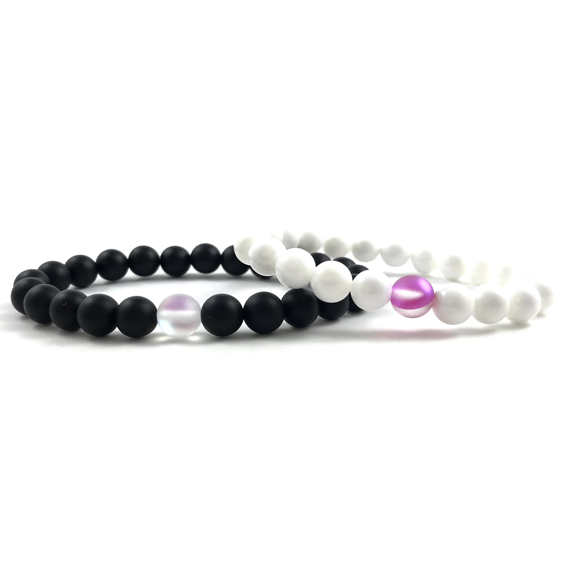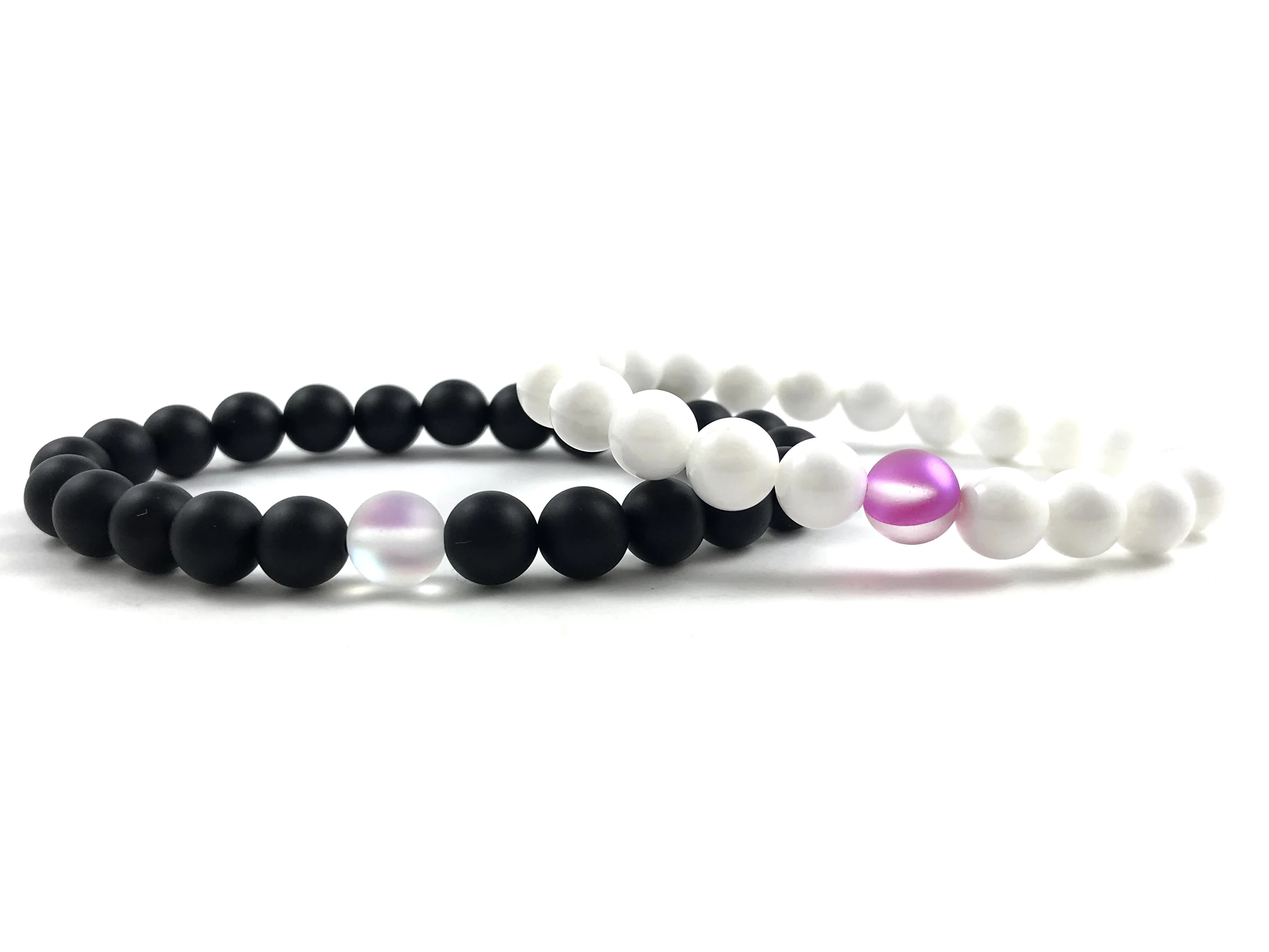 Jin-jang ónix és gyöngyház hologramos páros karkötők