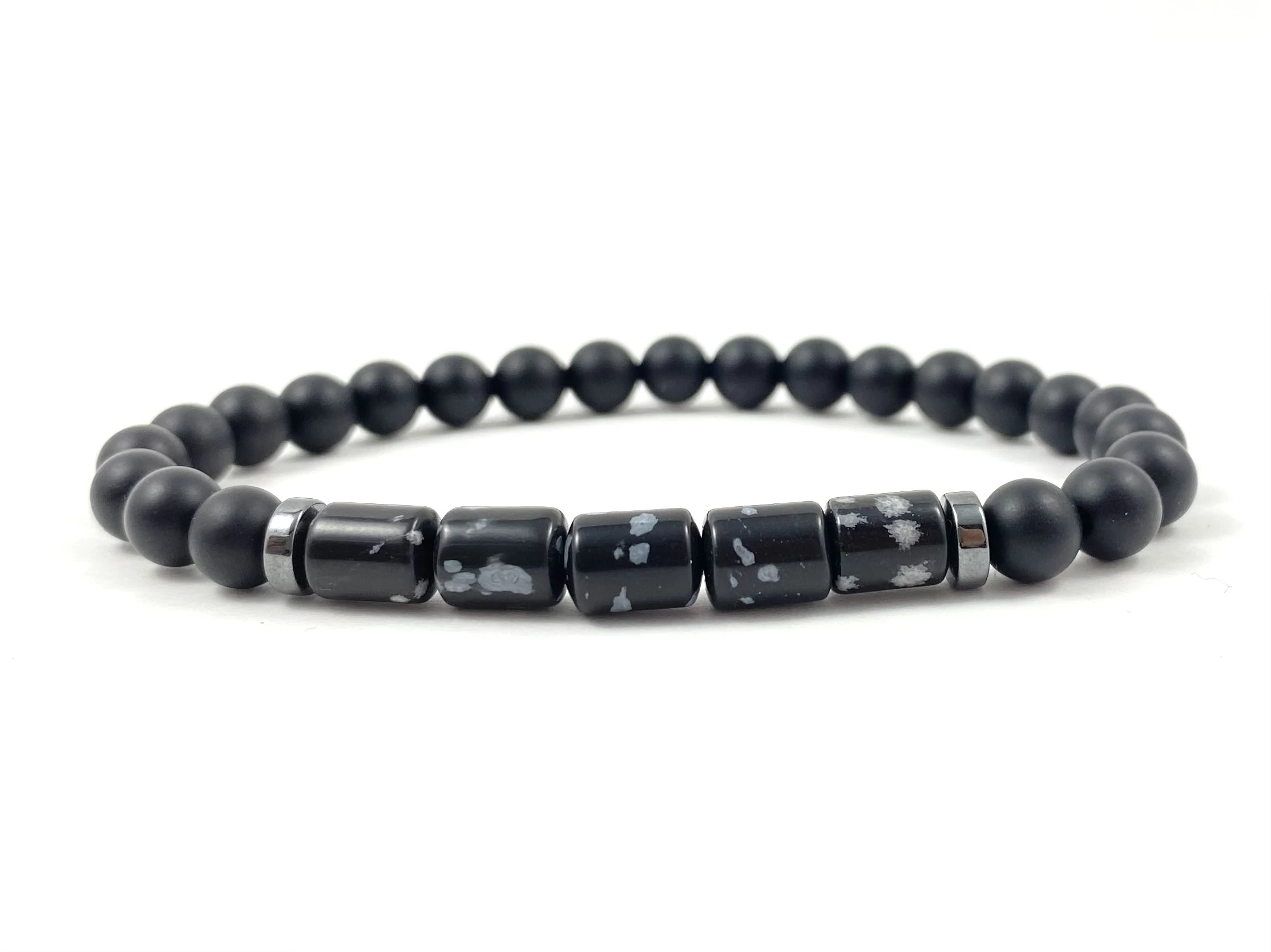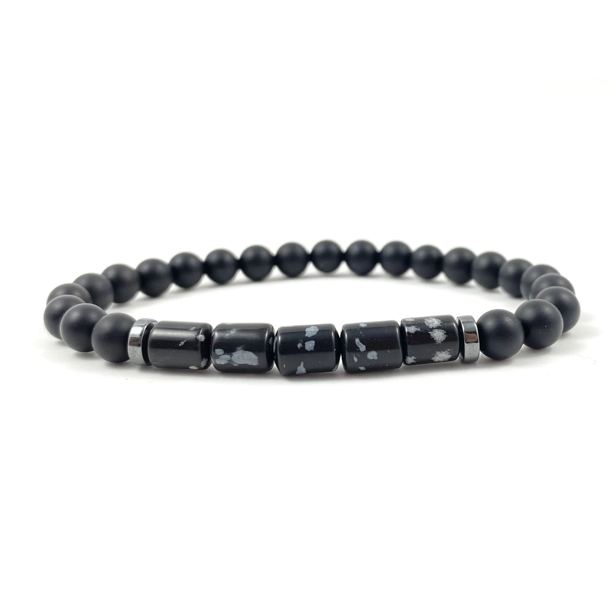 Matt ónix obszidián hengeres karkötő