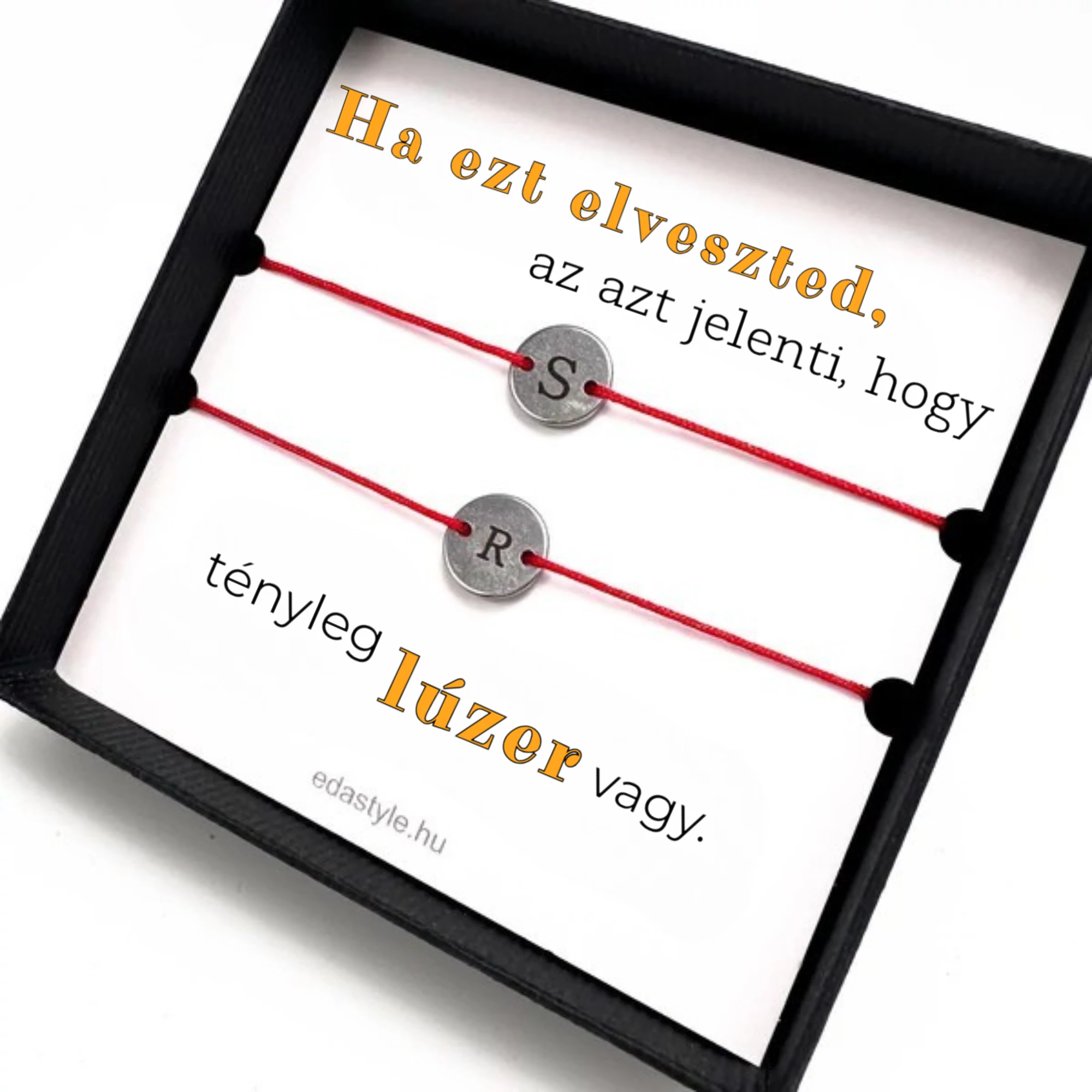 Lúzer vagy Páros karkötő EGYEDI gravírozható kör medállal Piros