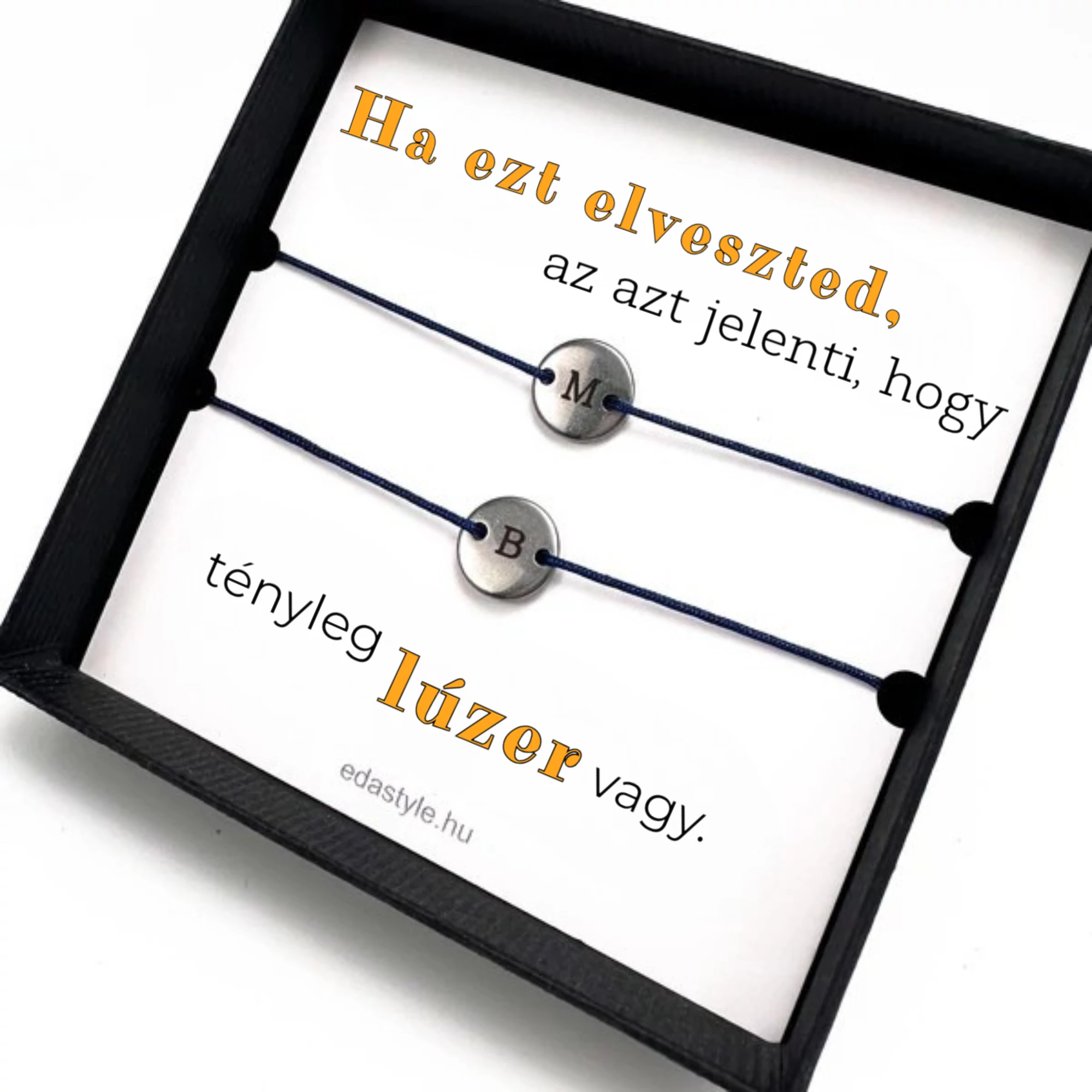 Lúzer vagy Páros karkötő EGYEDI gravírozható kör medállal Kék