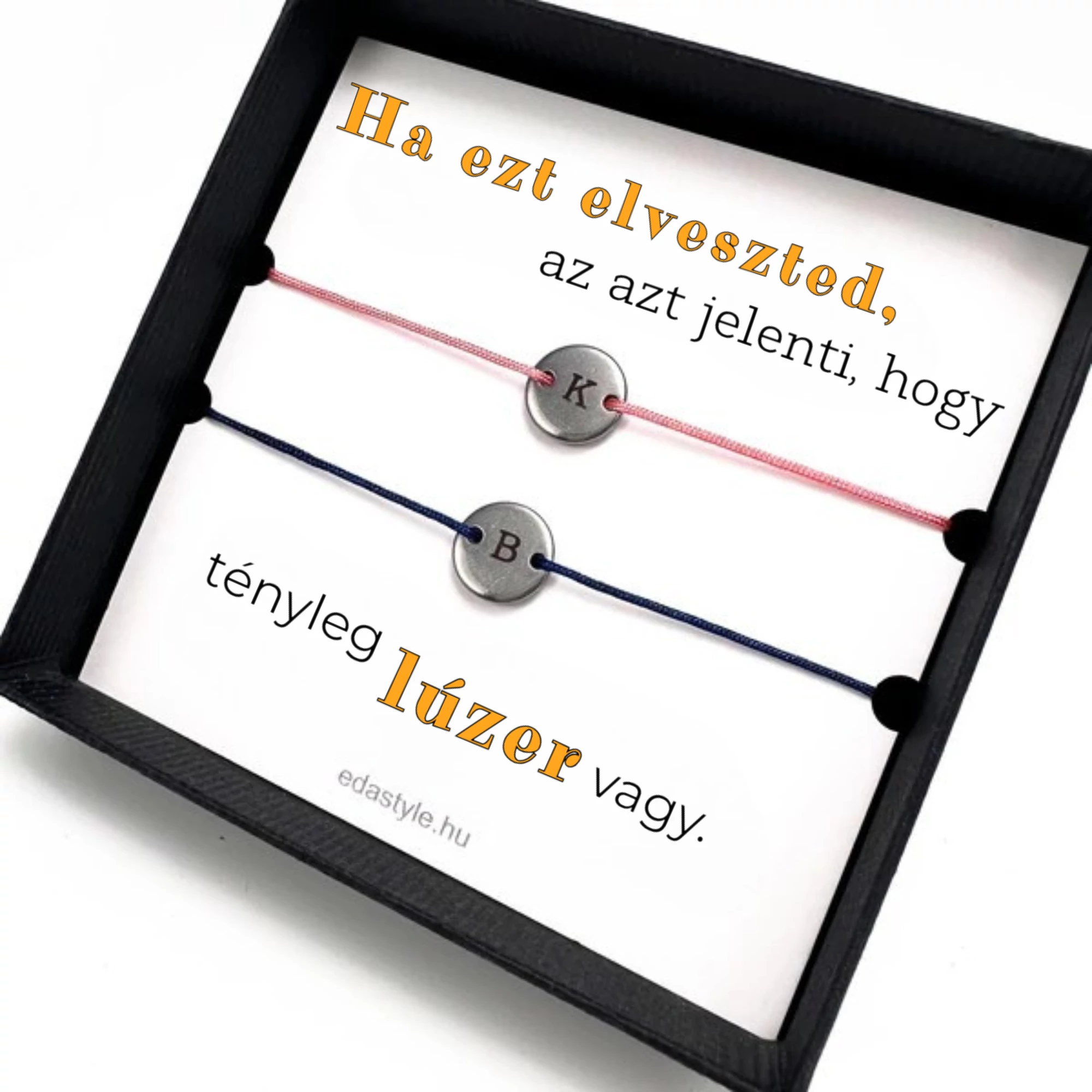 Lúzer vagy Páros karkötő EGYEDI gravírozható kör medállal Rózsaszín-Kék