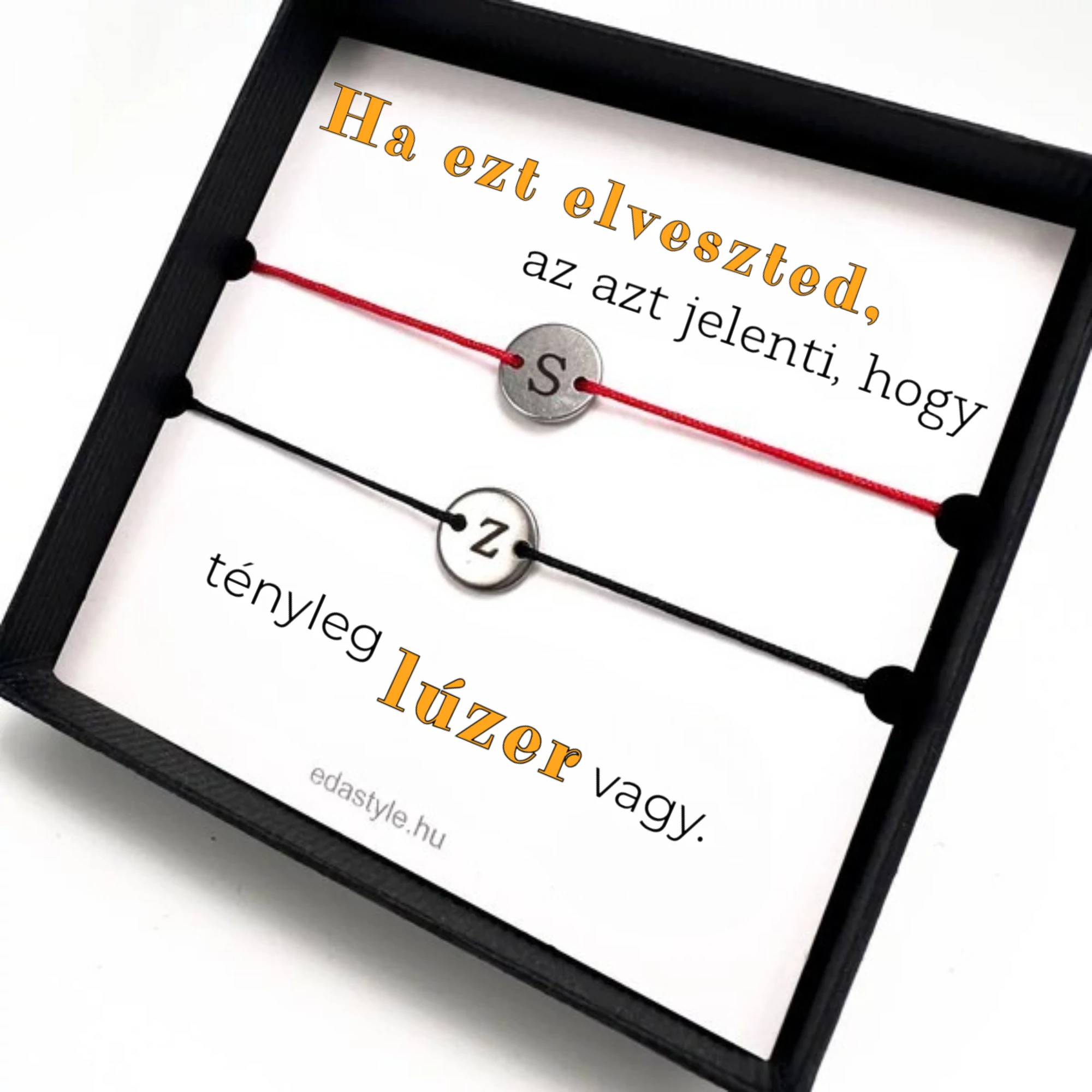 Lúzer vagy Páros karkötő EGYEDI gravírozható kör medállal Piros-Fekete