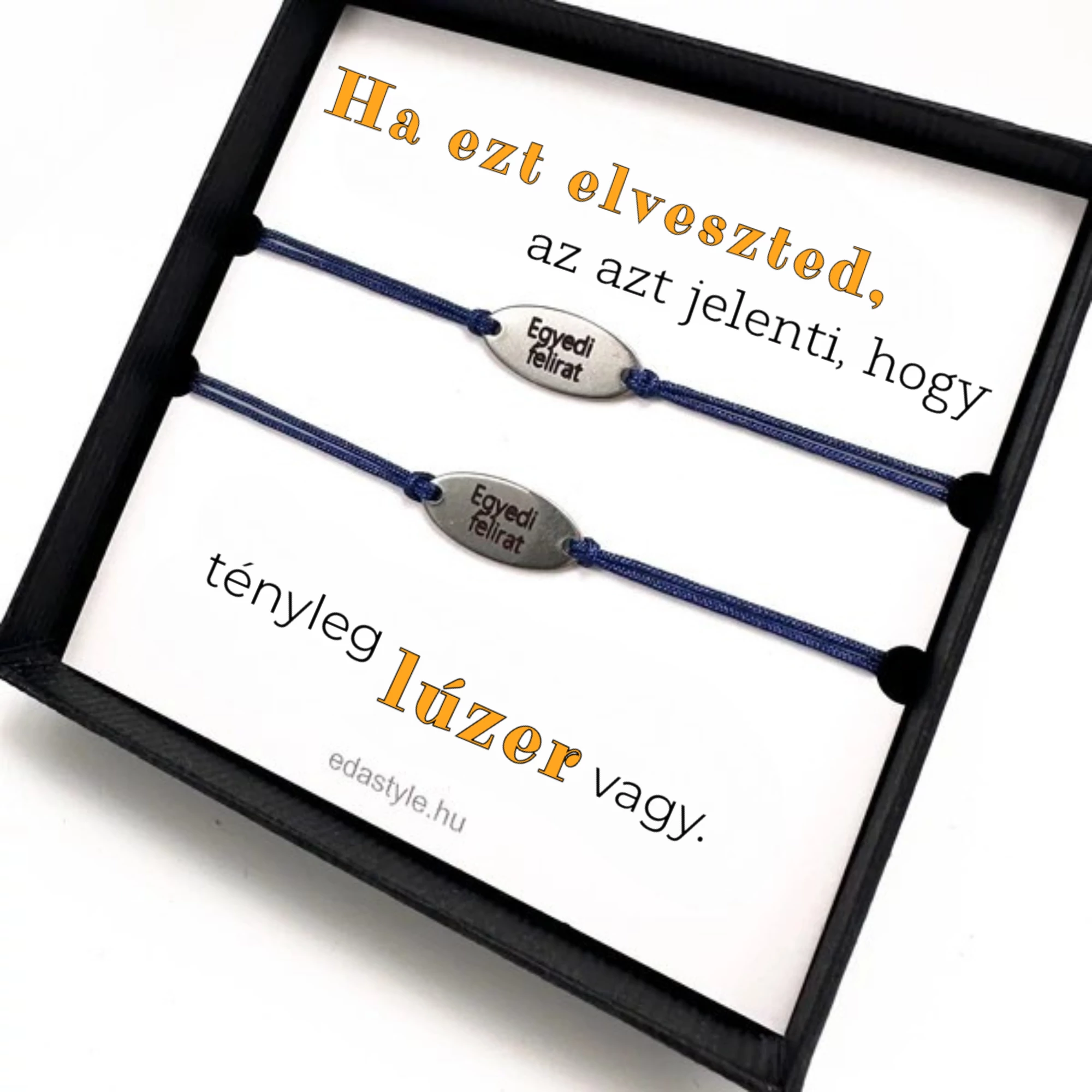 Lúzer vagy Páros karkötő EGYEDI gravírozott ovál medállal Kék