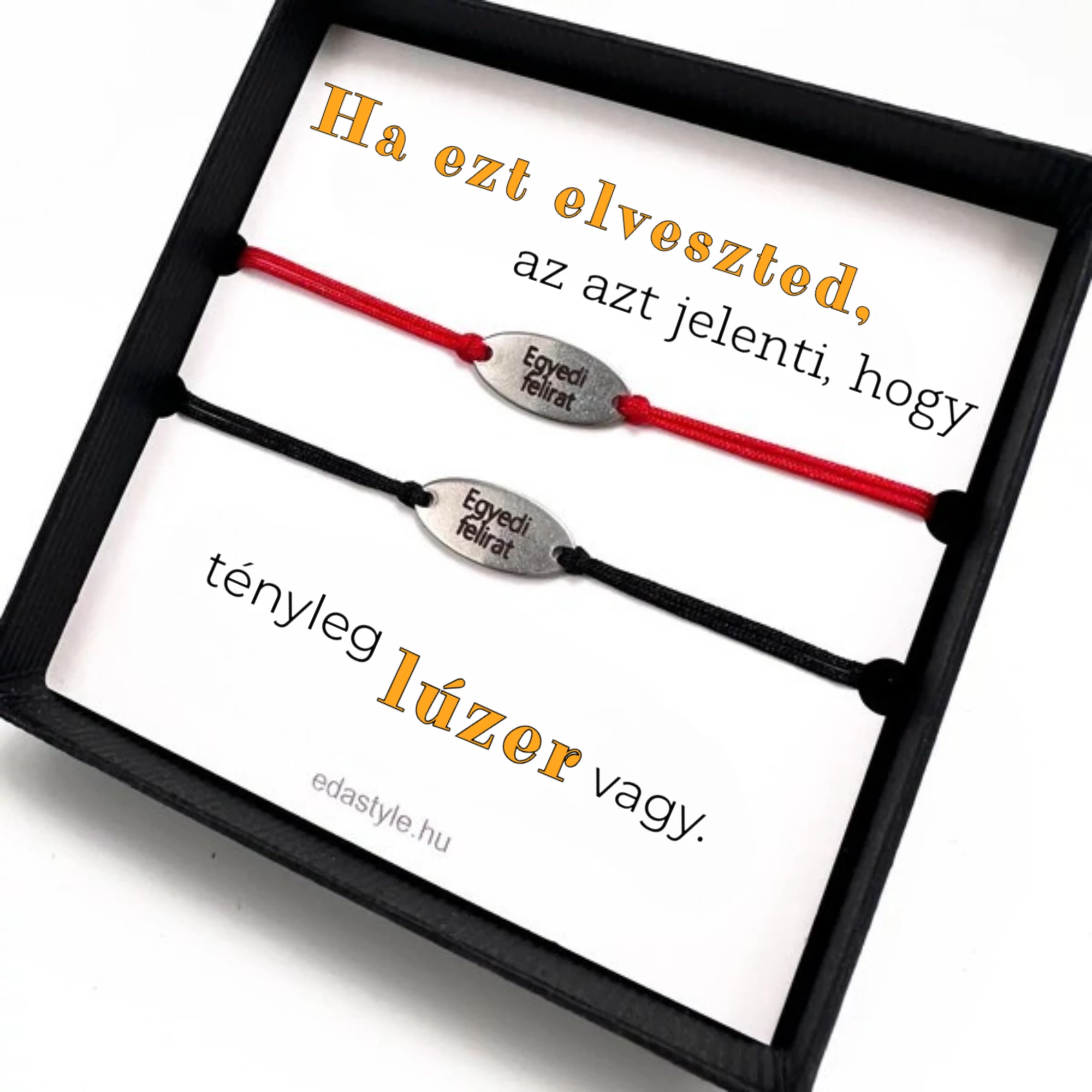 Lúzer vagy Páros karkötő EGYEDI gravírozott ovál medállal Piros-Fekete