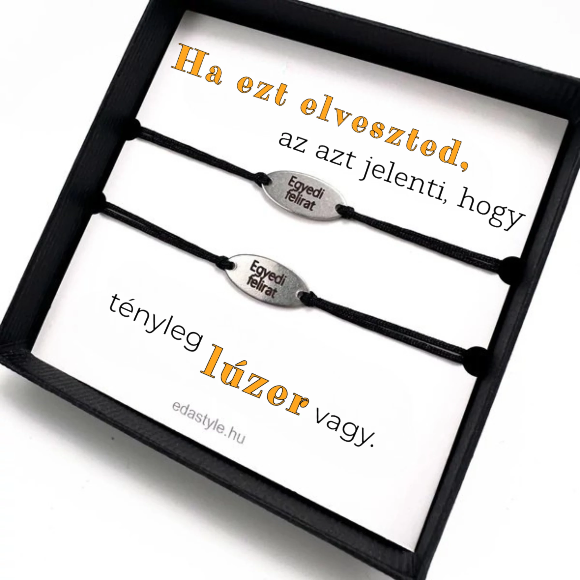 • Az ár 2db karkötőt tartalmaz díszdobozzal, egyedi gravírozással és a képen látható üzenetkártyával együtt.