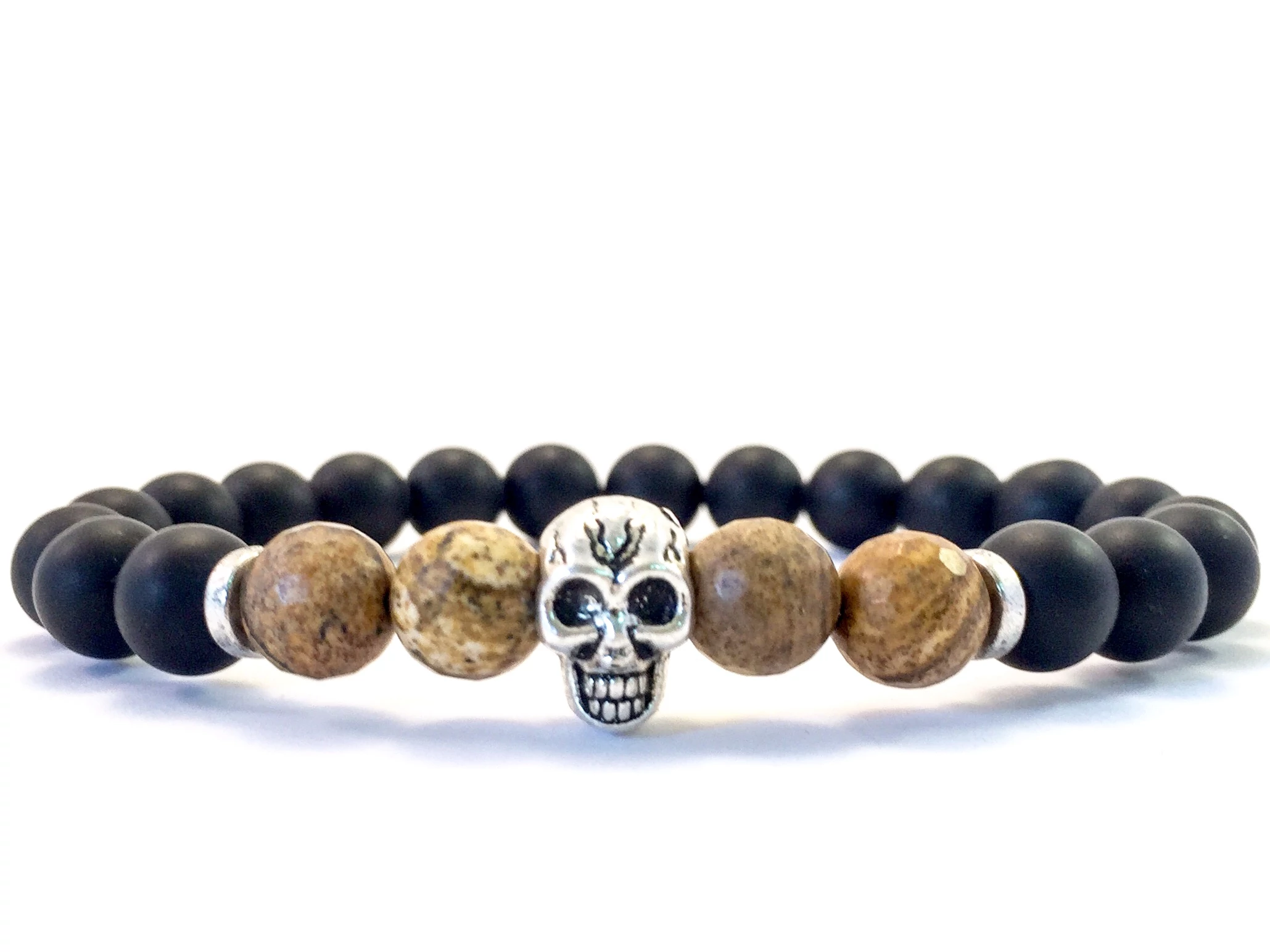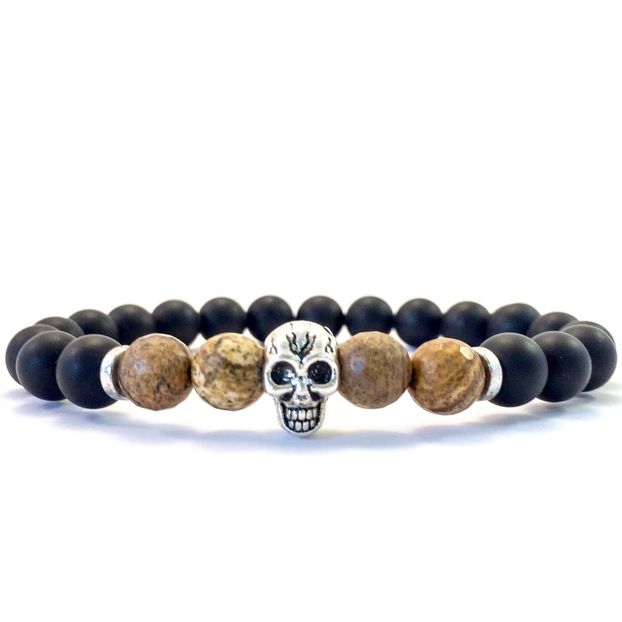 Matt ónix és jáspis koponyás karkötő FF