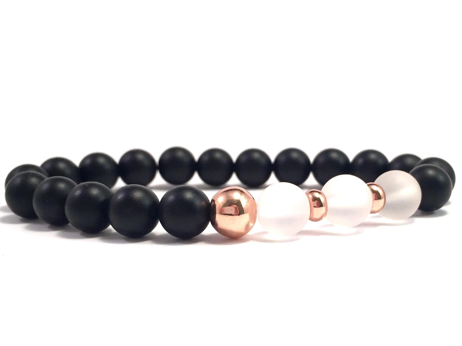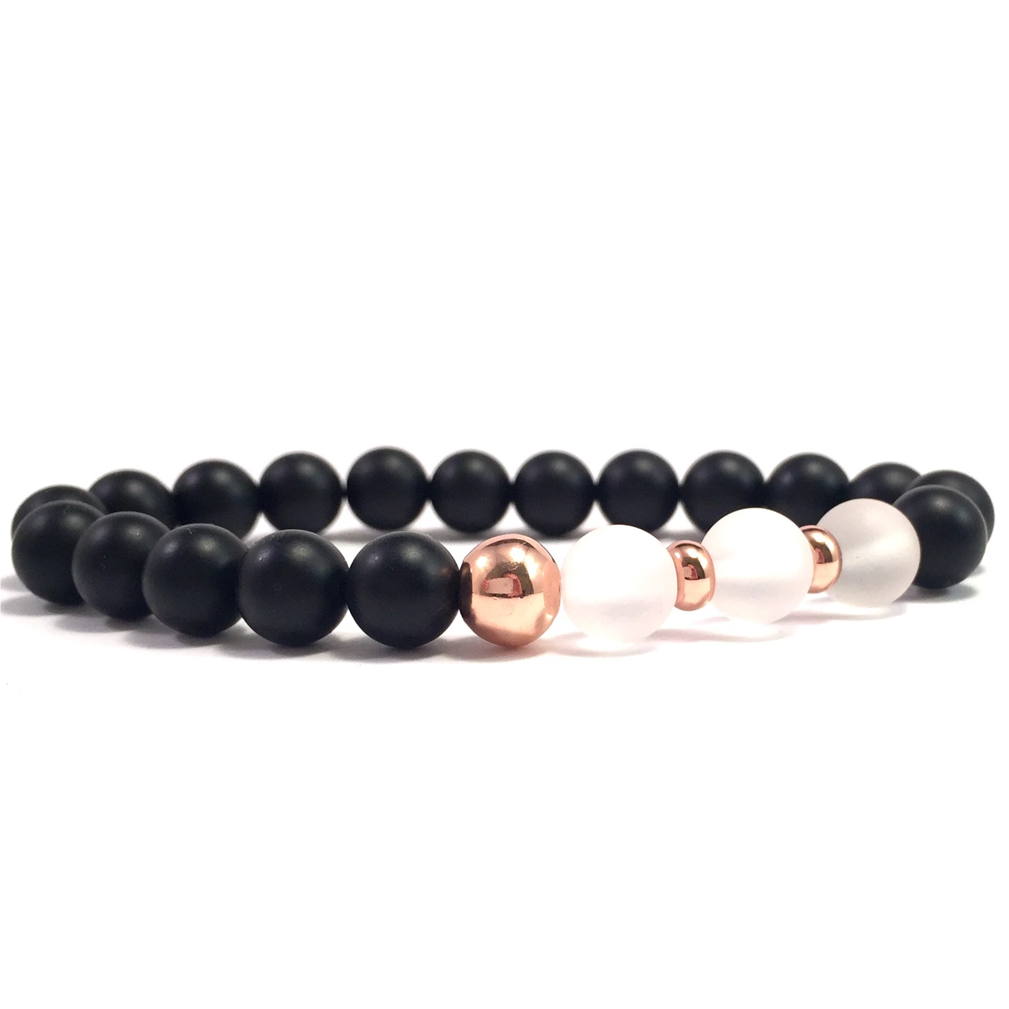Matt ónix és matt hegyikristály rozé gyöngy karkötő