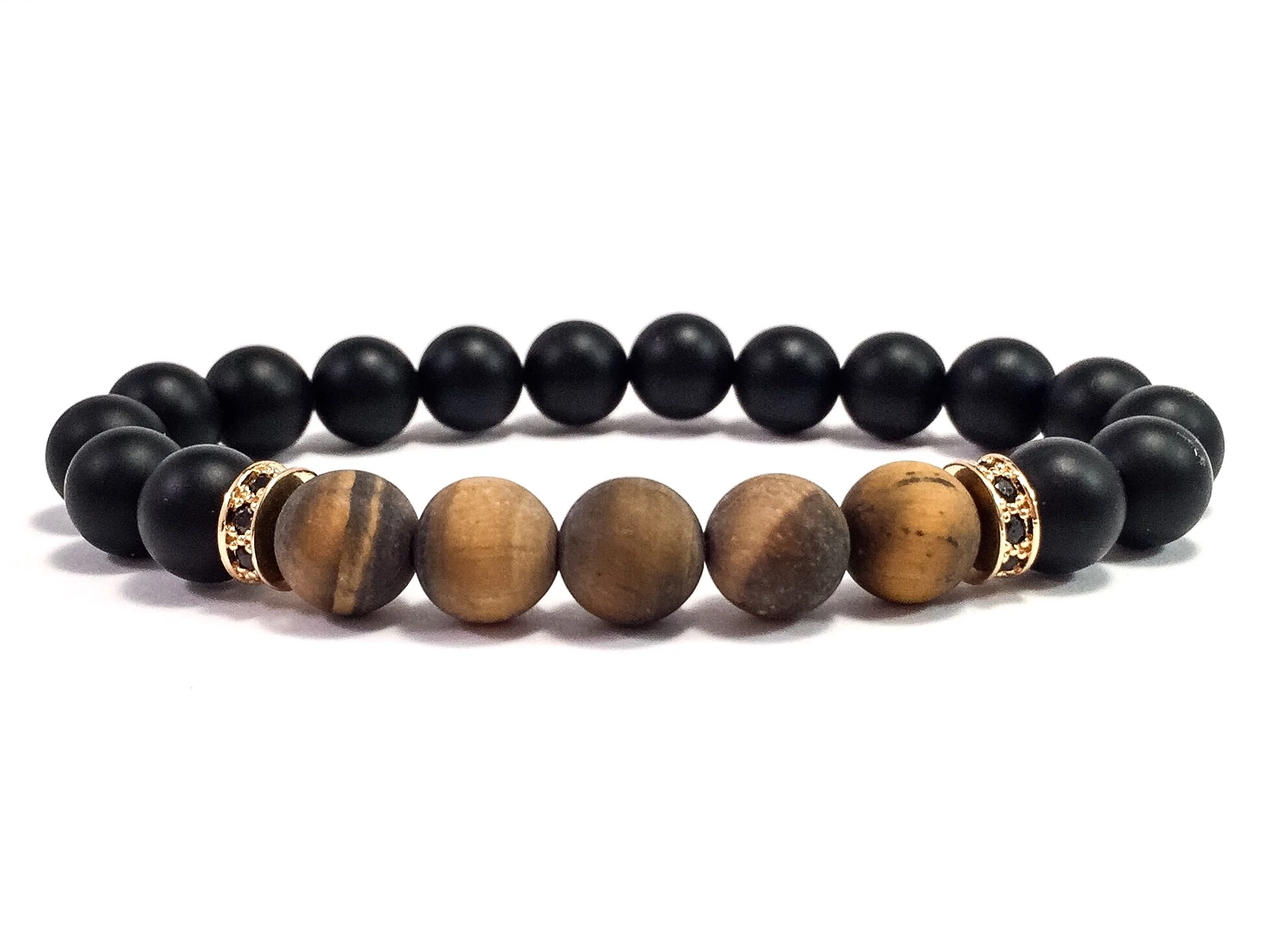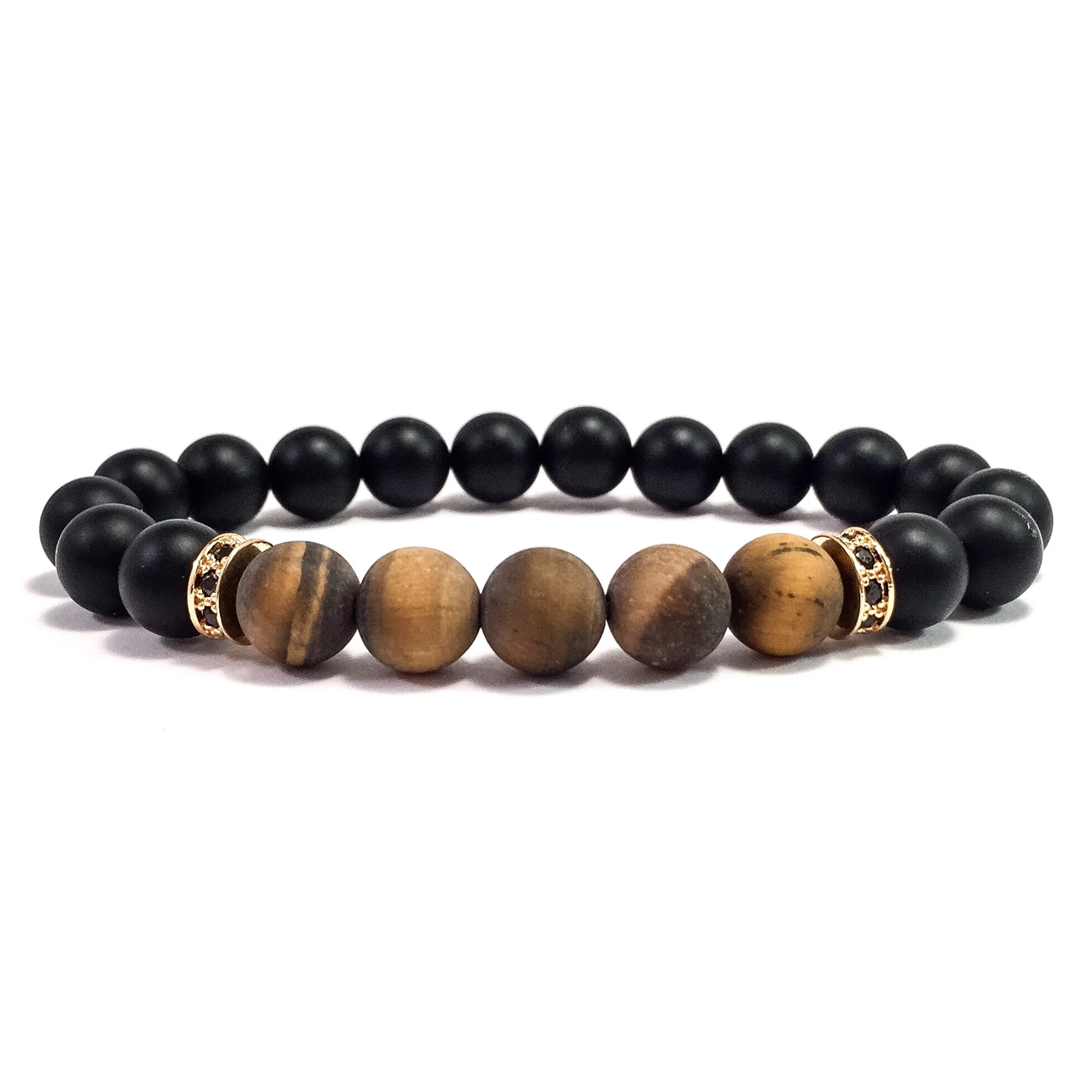 Matt ónix és matt tigrisszem arany rondeles karkötő