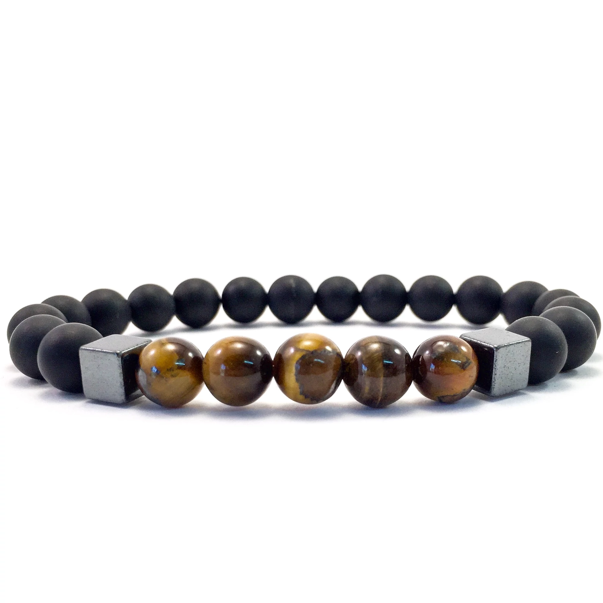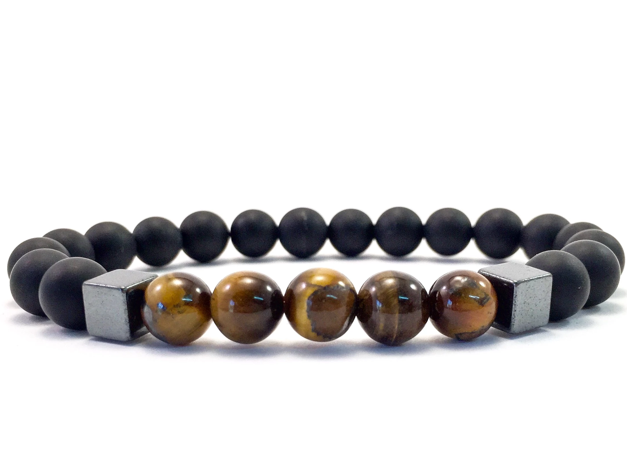 Matt ónix és tigrisszem hematit 2 kockás karkötő FF