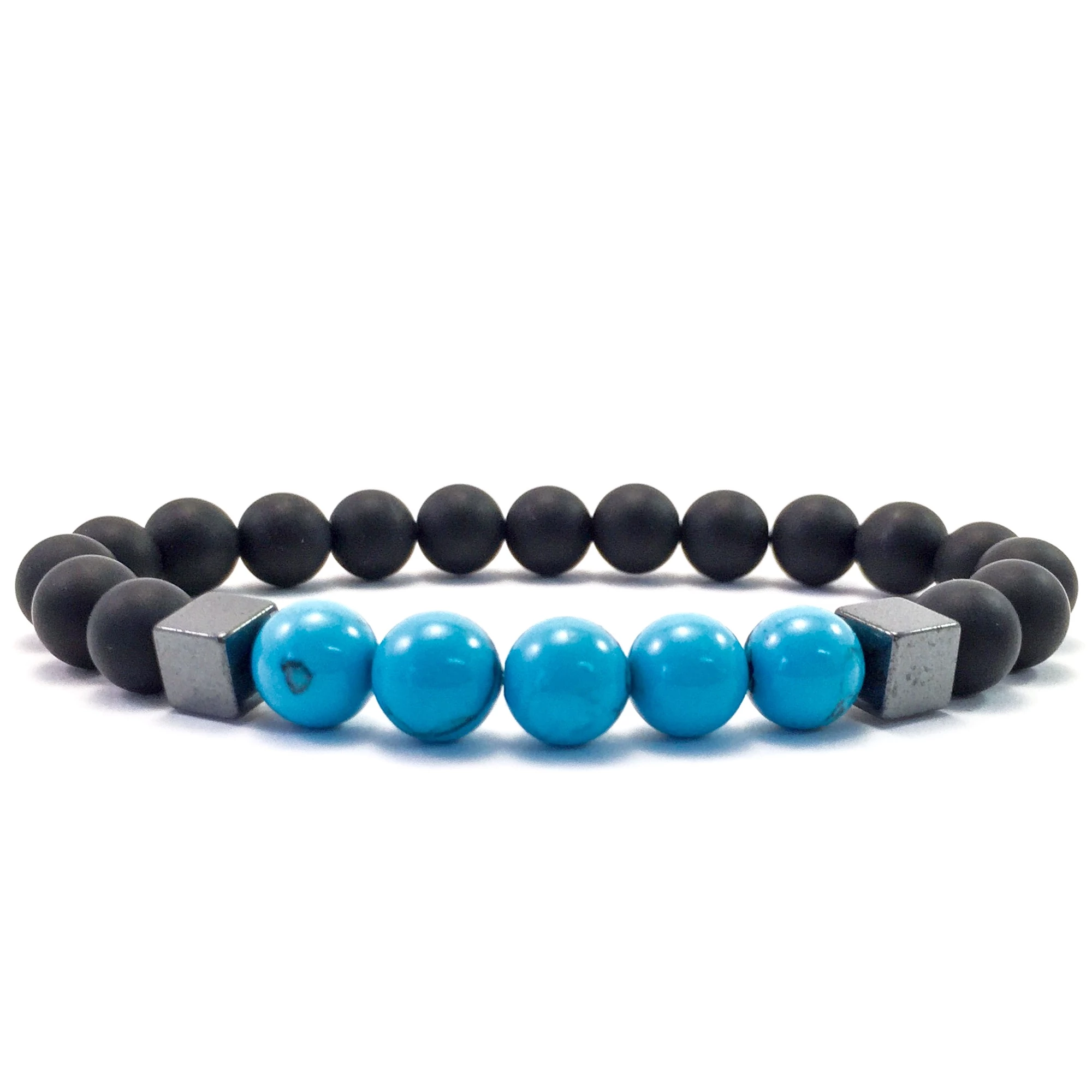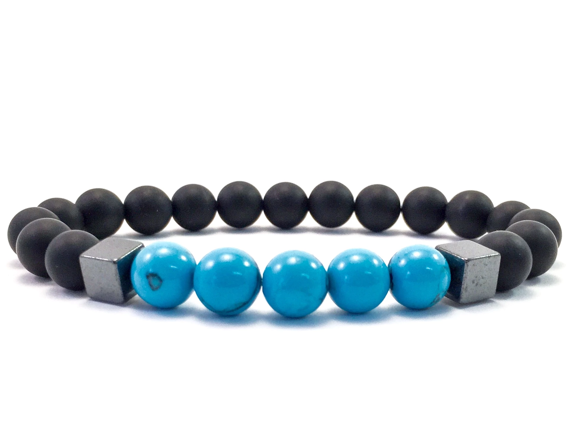 Matt ónix és türkid hematit 2 kockás karkötő FF