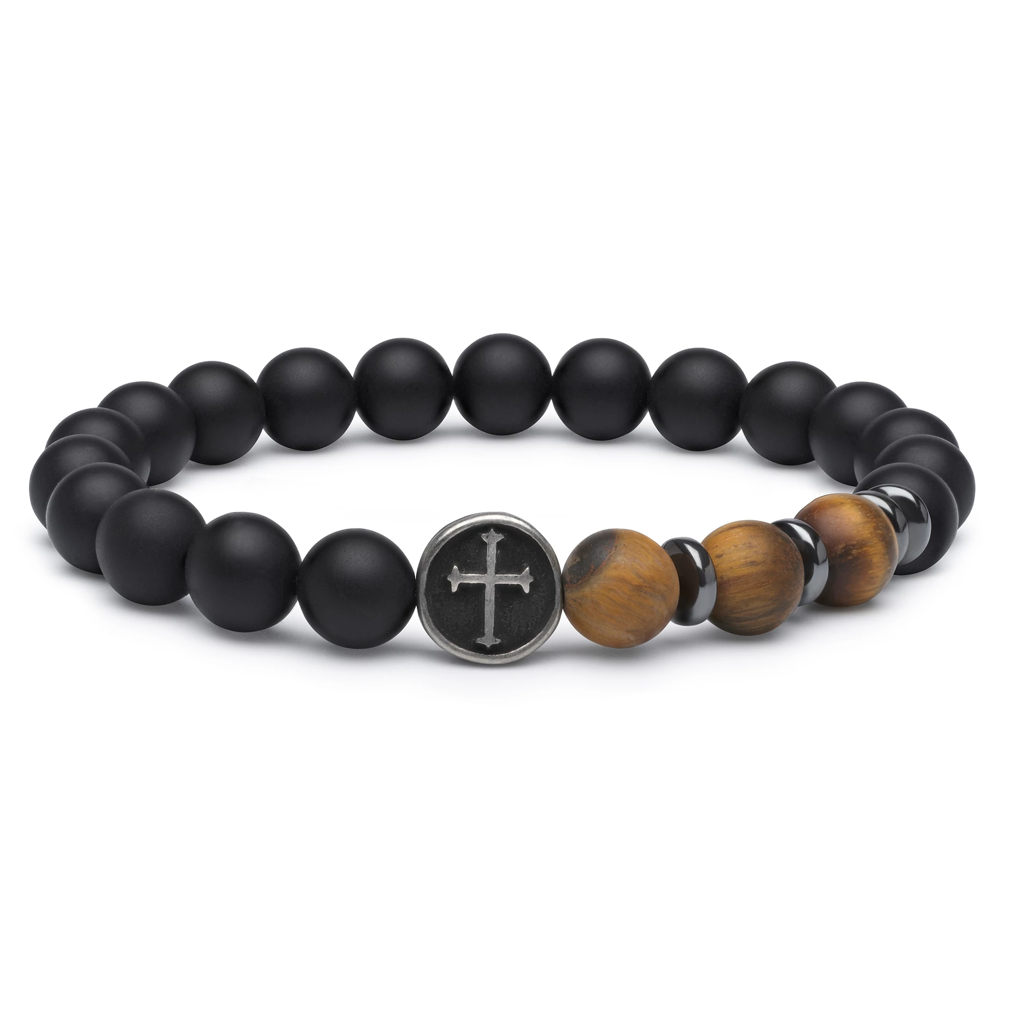 Matt Ónix Tigrisszem Karkötő Ezüst Medállal