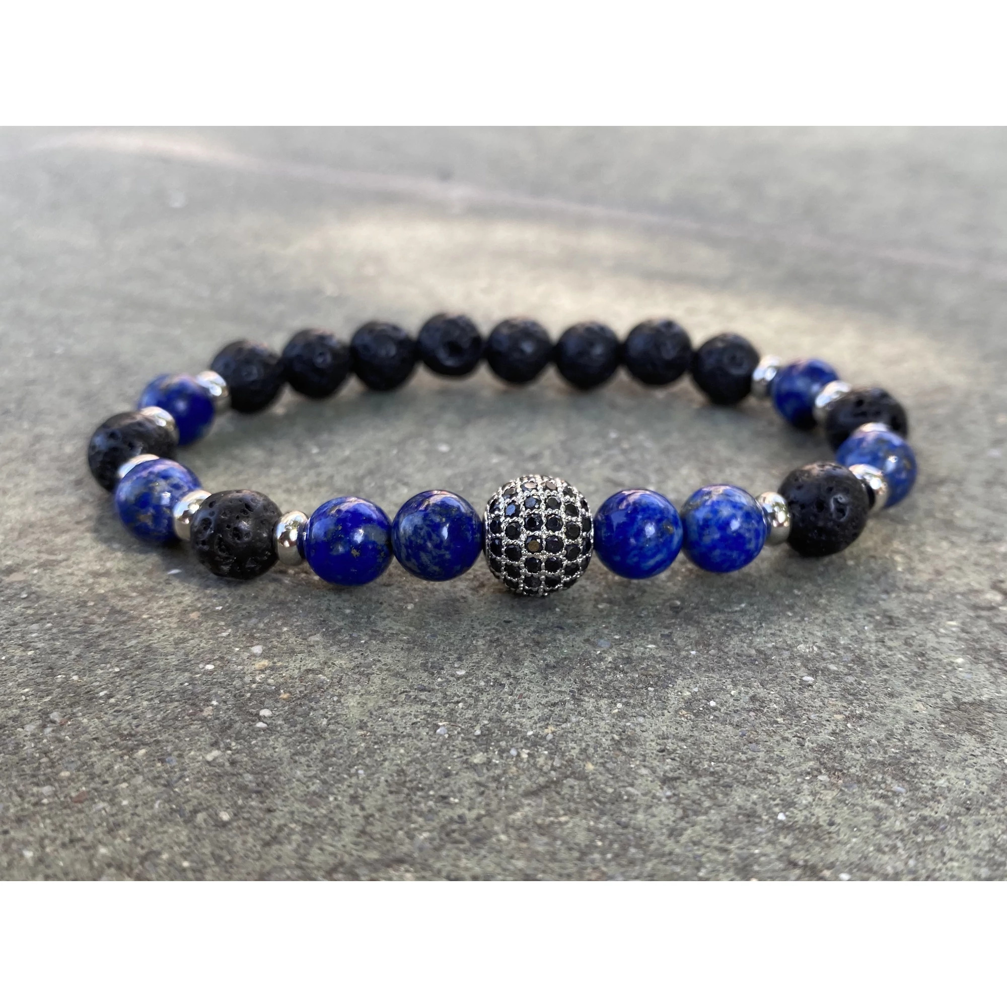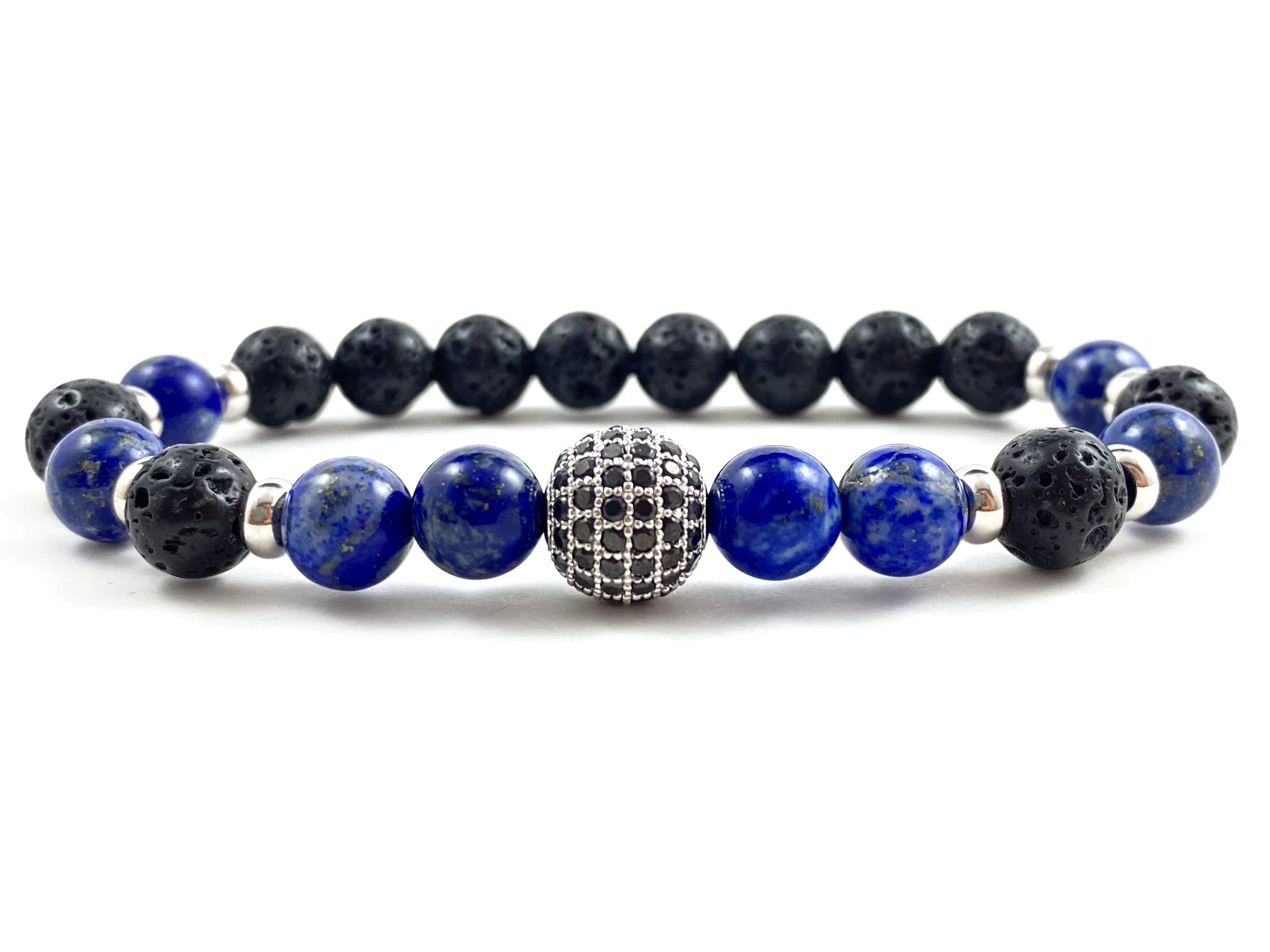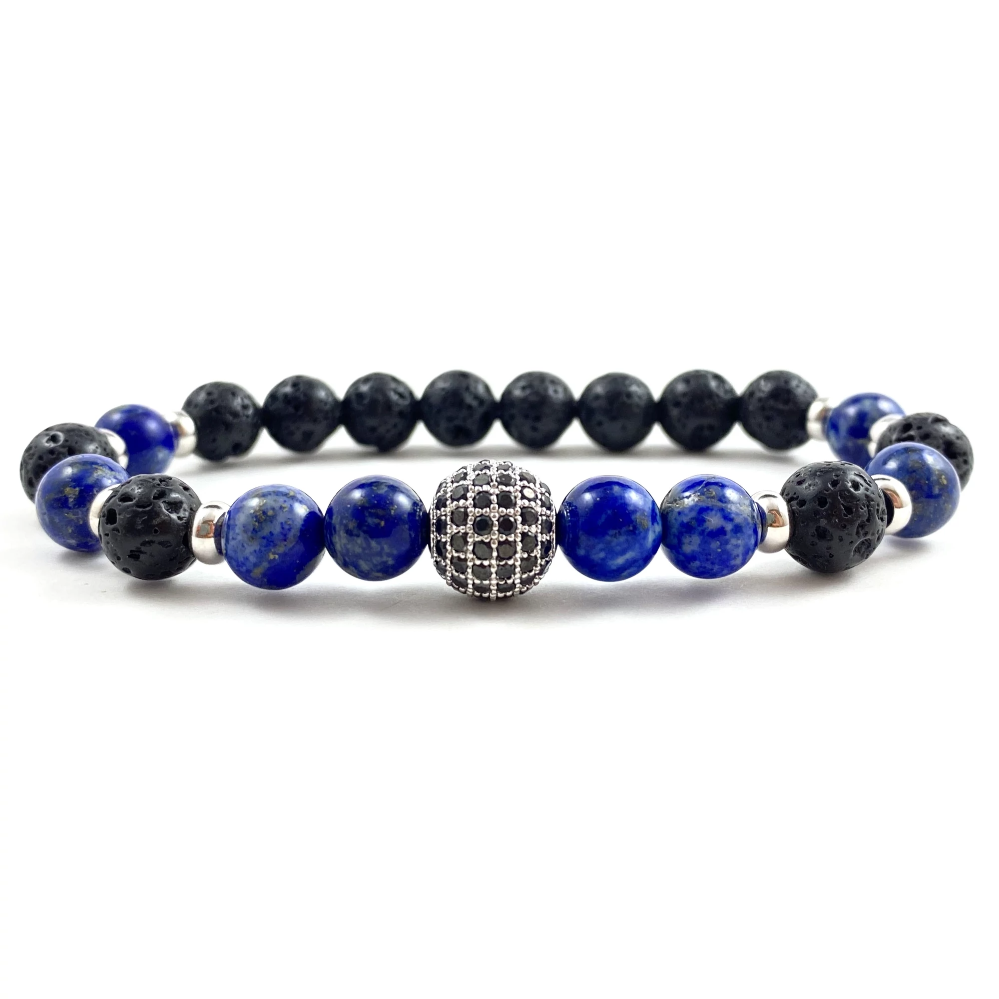 Matt ónix és lazurit luxury ezüst cirkon labdás karkötő