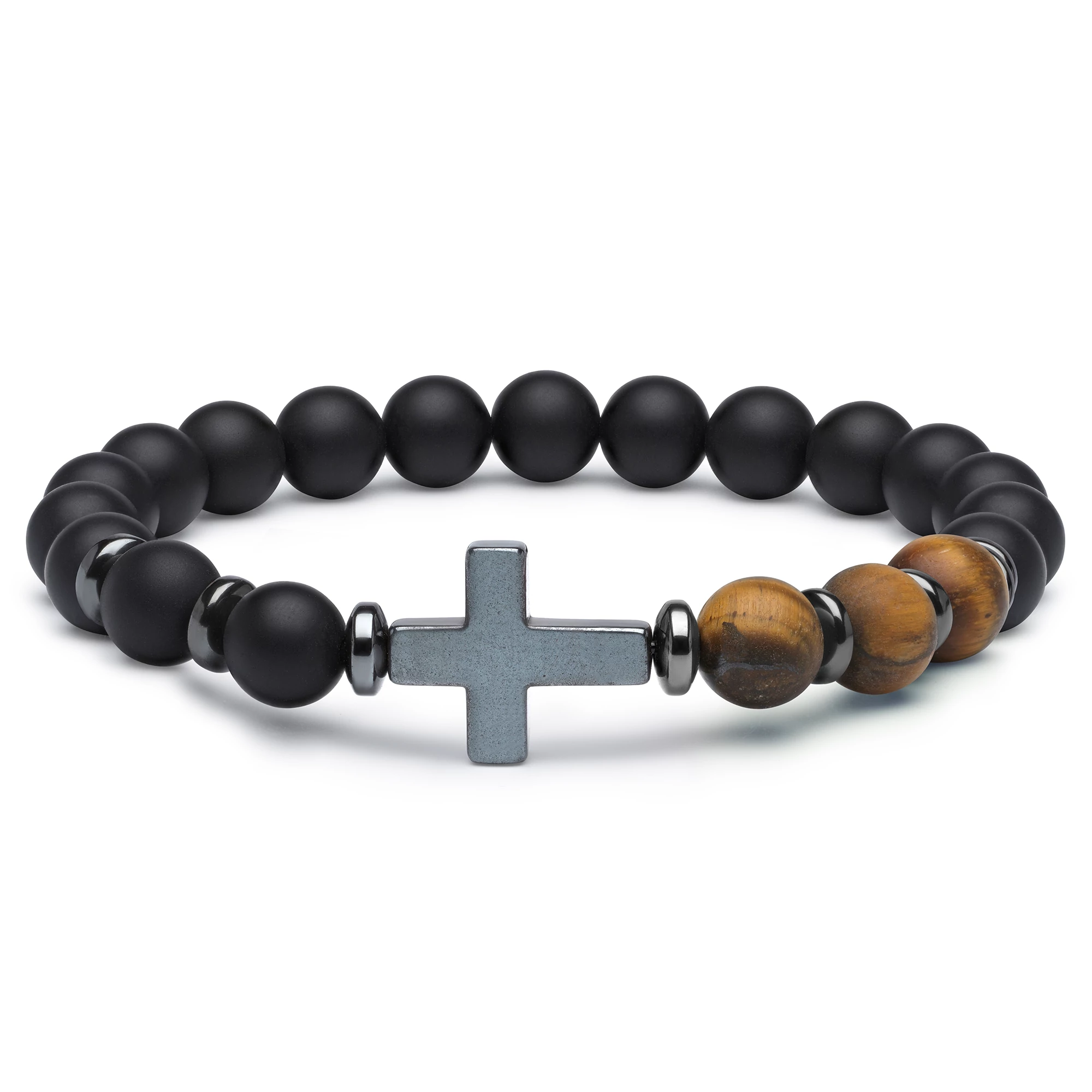 Matt Ónix Tigrisszem Karkötő Kereszttel