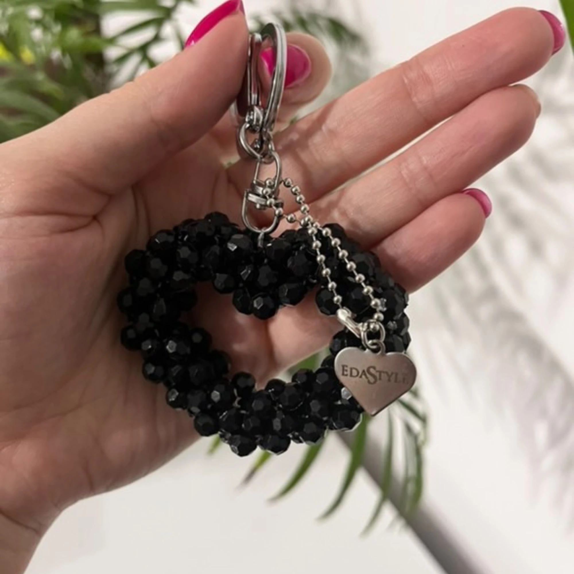 Mini Szív kulcstartó Fekete Csillogó