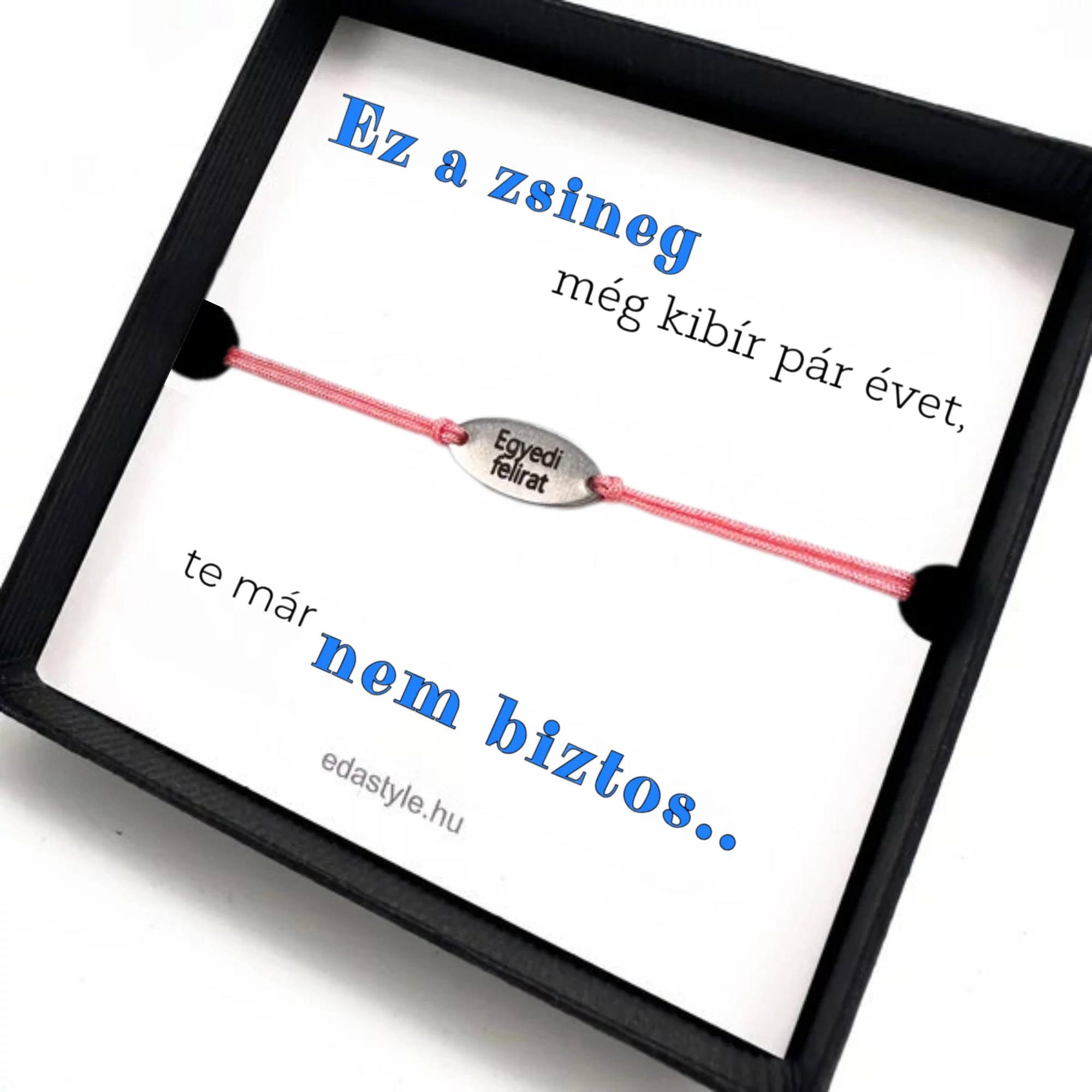 Öregszel karkötő EGYEDI gravírozható ovális medállal Rózsaszín