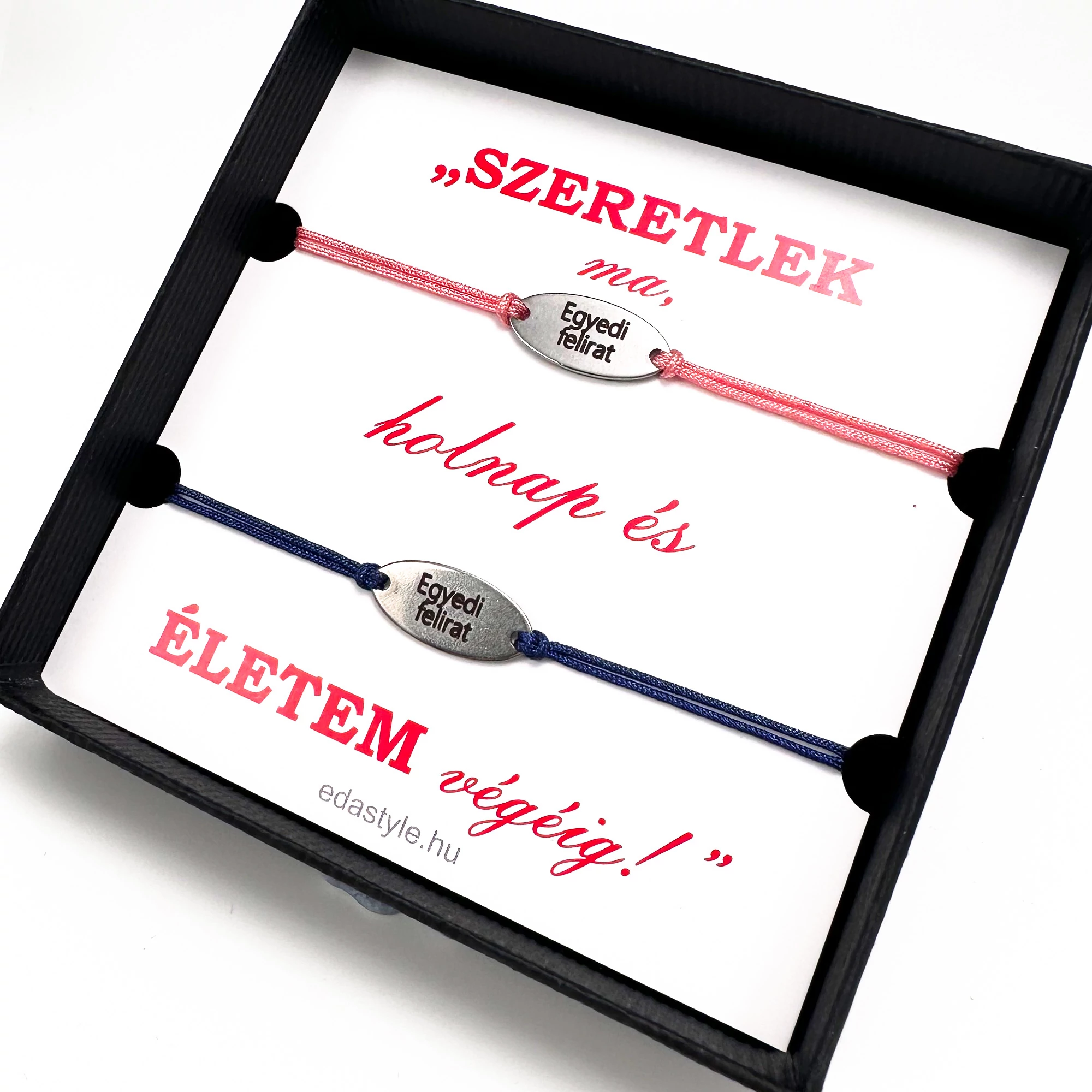 Páros karkötő EGYEDI gravírozott ovál medállal Rózsaszín-Kék
