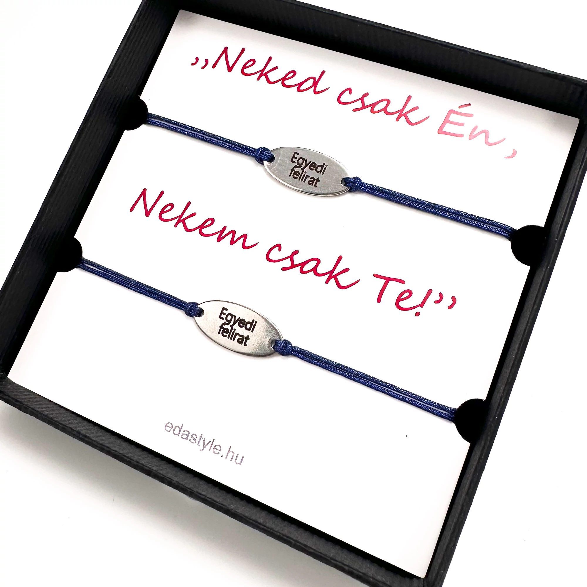 Páros karkötő EGYEDI gravírozott ovál medállal Kék