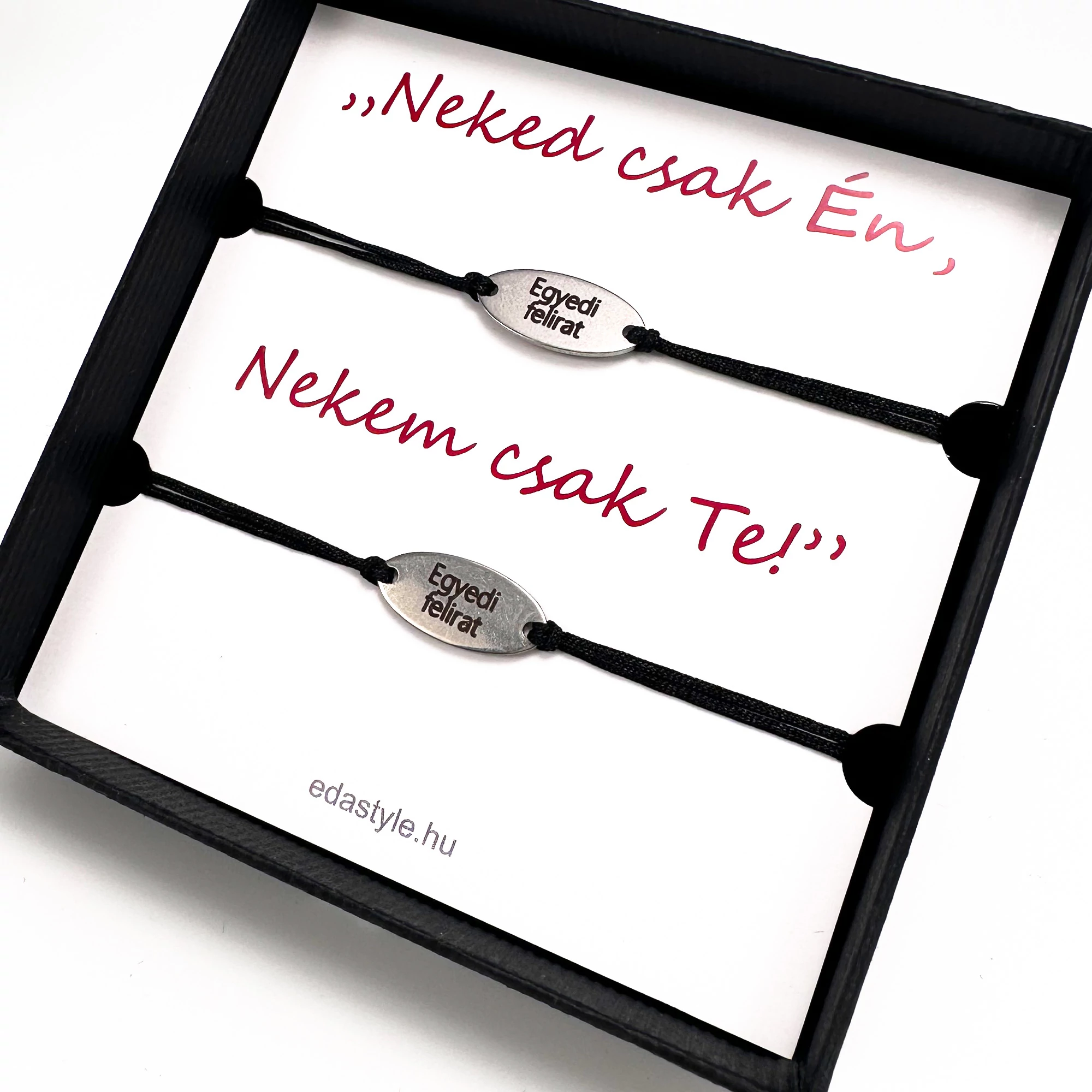 Páros karkötő EGYEDI gravírozott ovál medállal Fekete