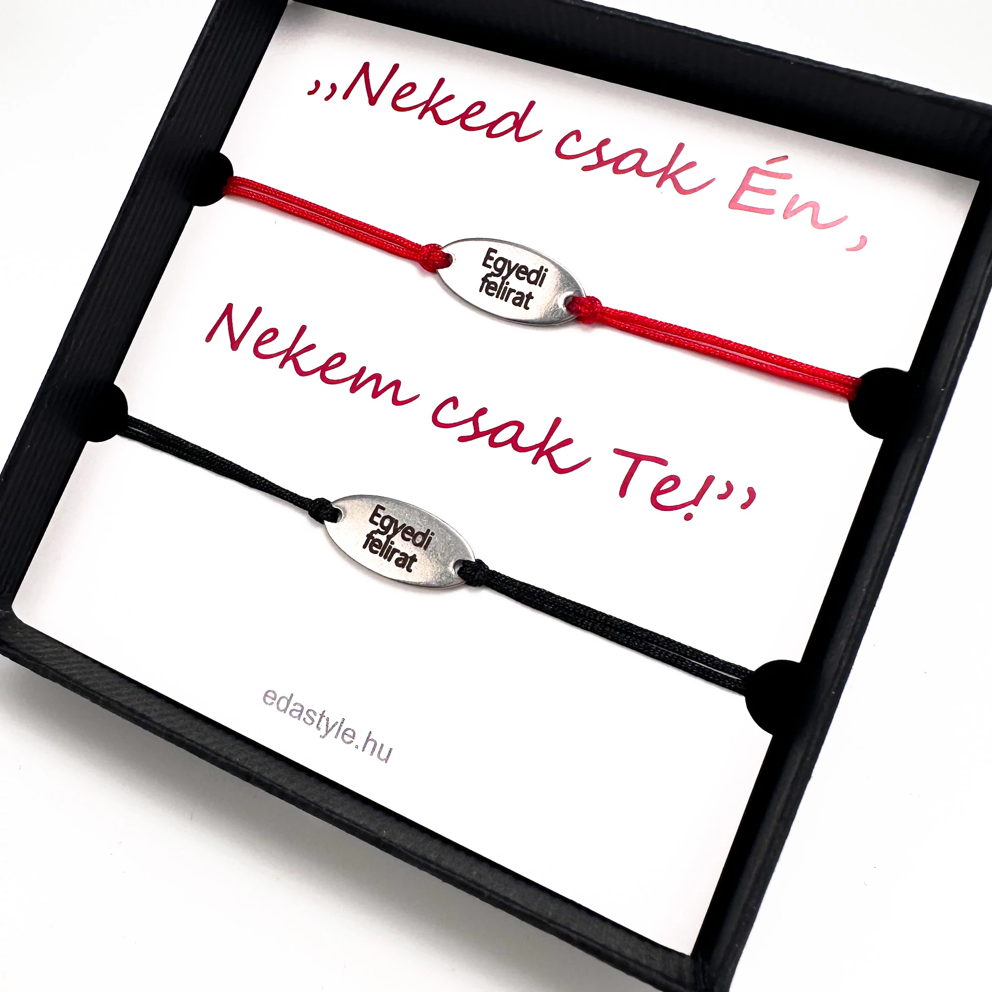 Páros karkötő EGYEDI gravírozott ovál medállal Piros-Fekete