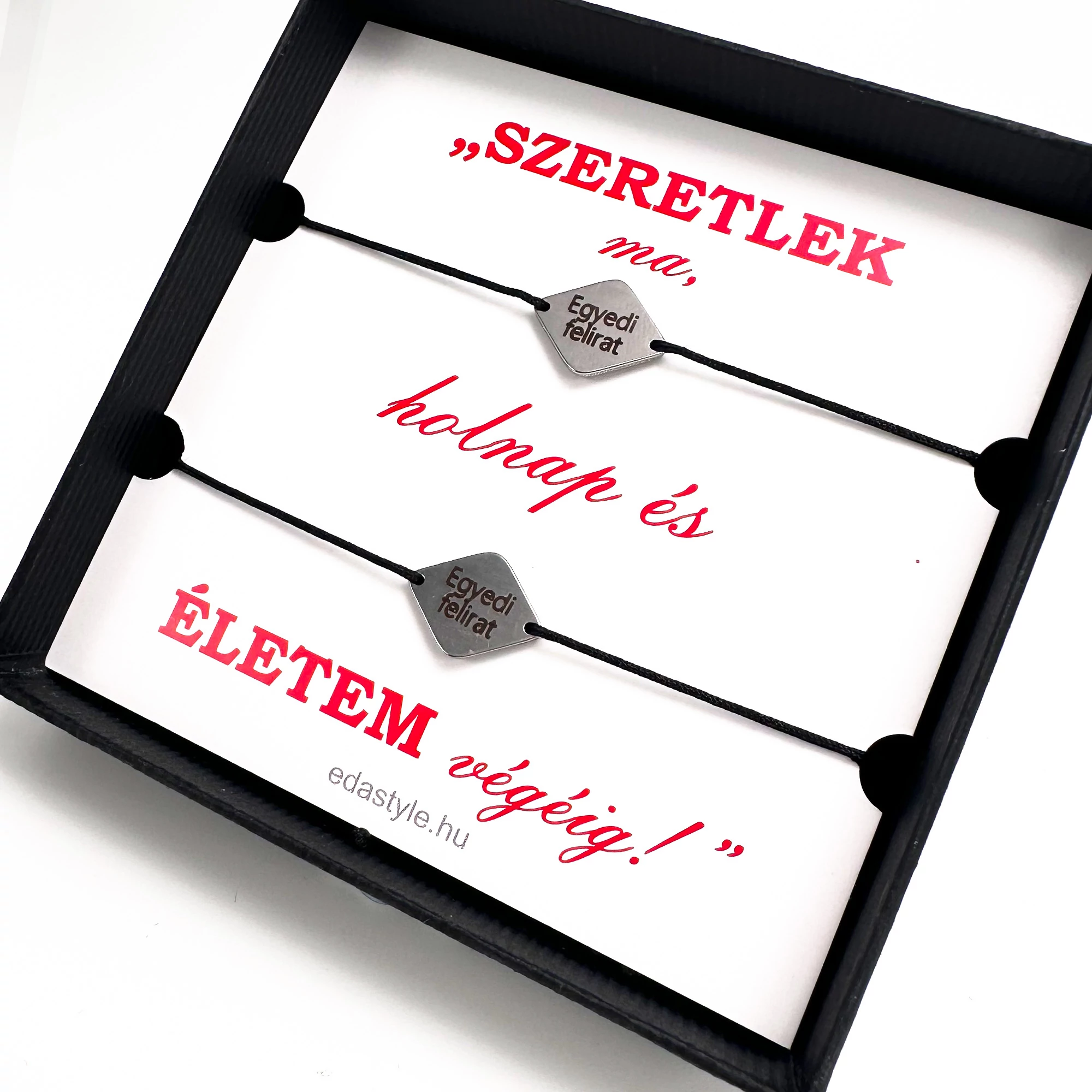 Páros karkötő EGYEDI gravírozott rombusz medállal Fekete