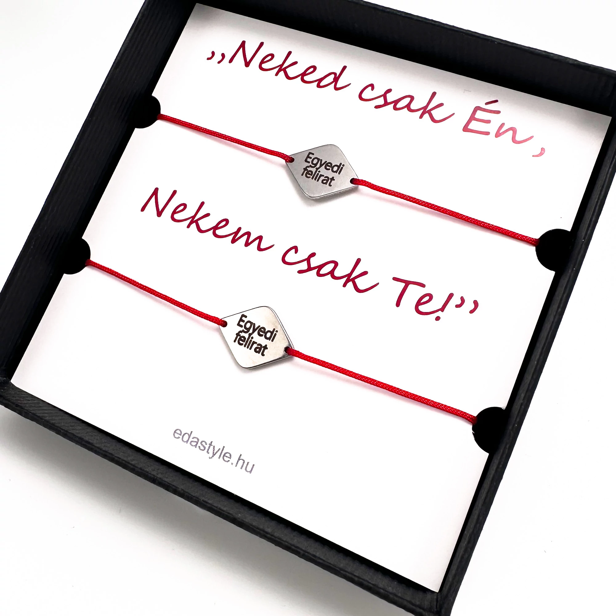 Páros karkötő EGYEDI gravírozott rombusz medállal Piros