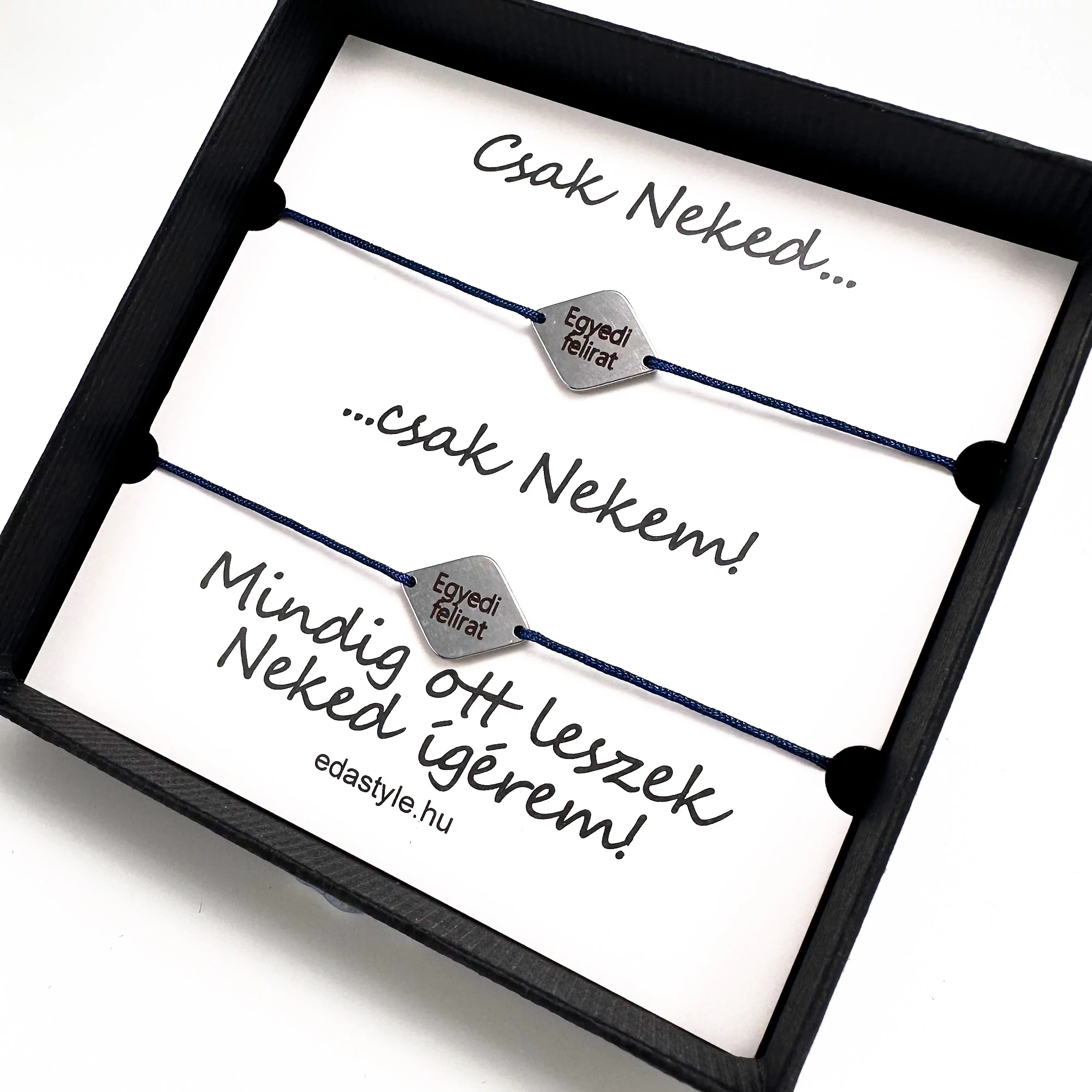 • Az ár 2db karkötőt tartalmaz díszdobozzal, egyedi gravírozással és a képen látható üzenetkártyával együtt.