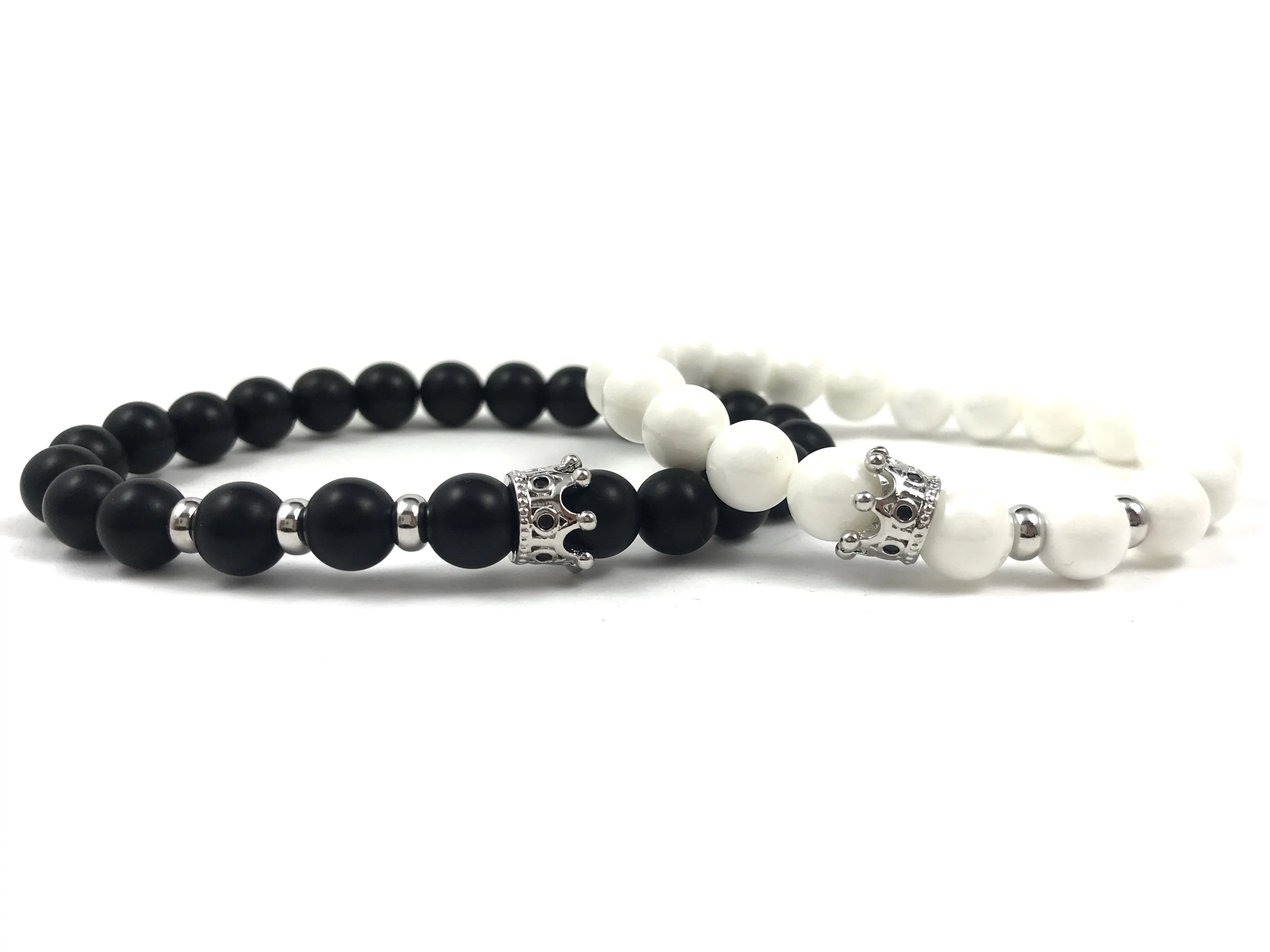 Páros ónix és gyöngyház ezüst queen & king karkötők