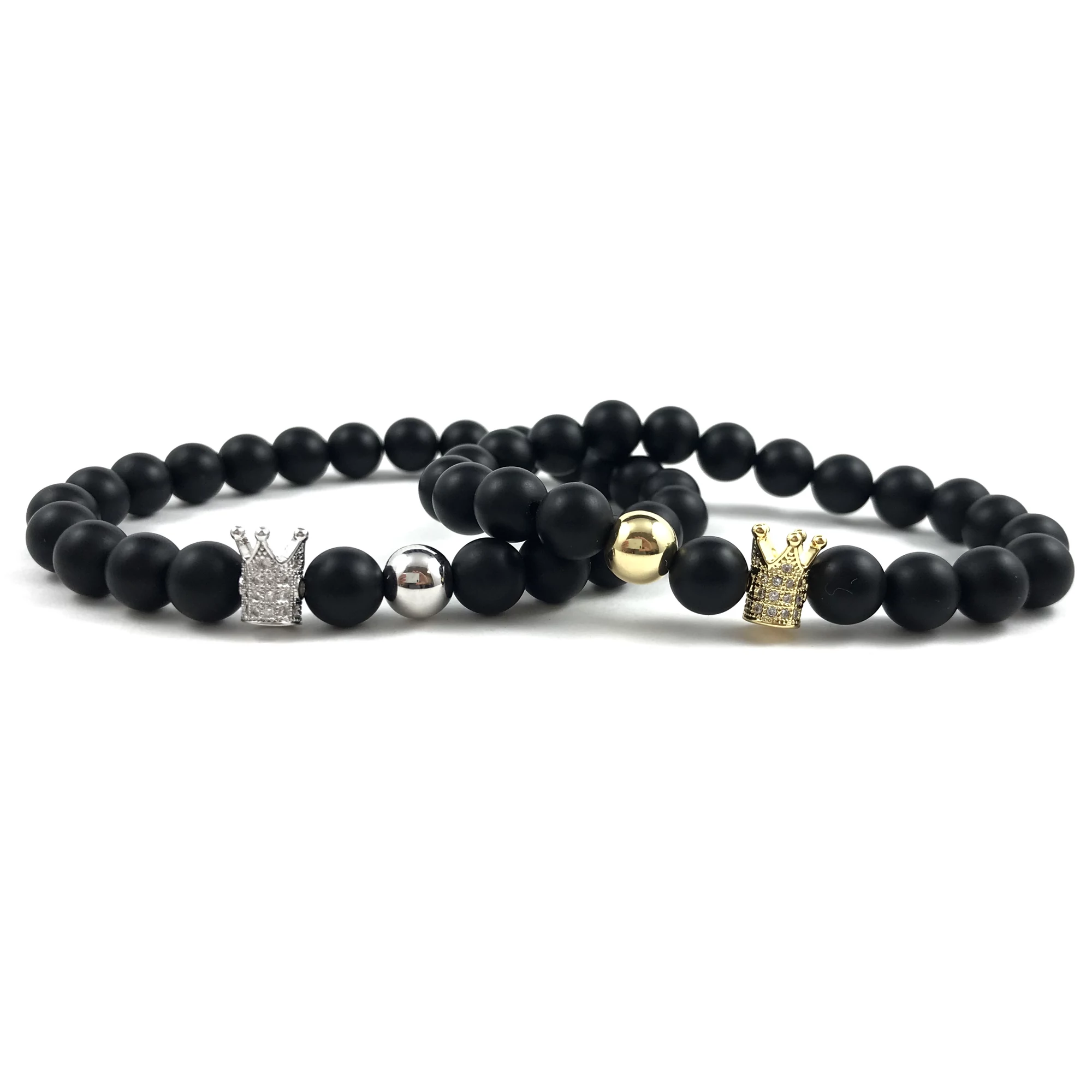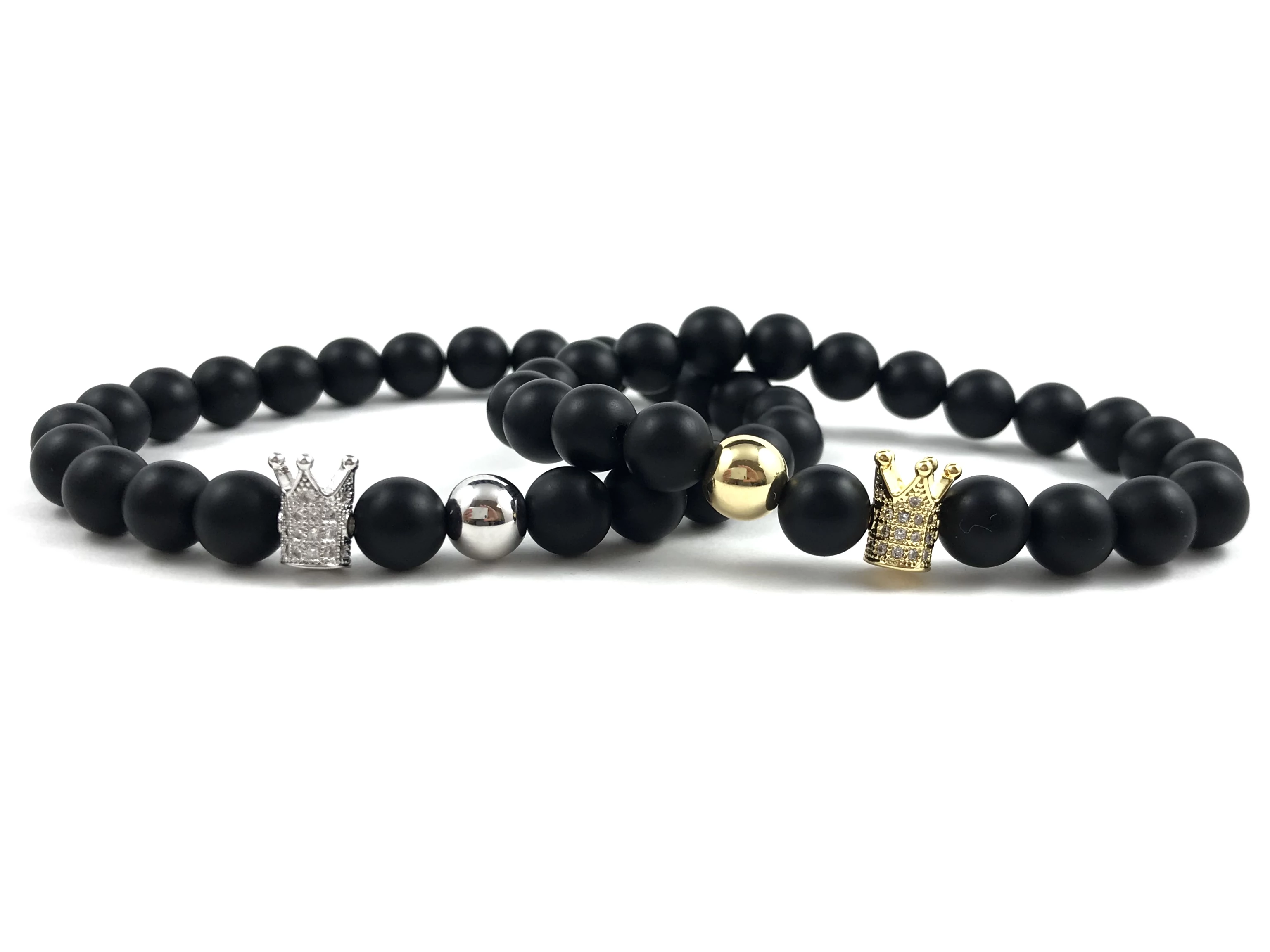 Páros ónix ezüst és arany queen & king karkötők