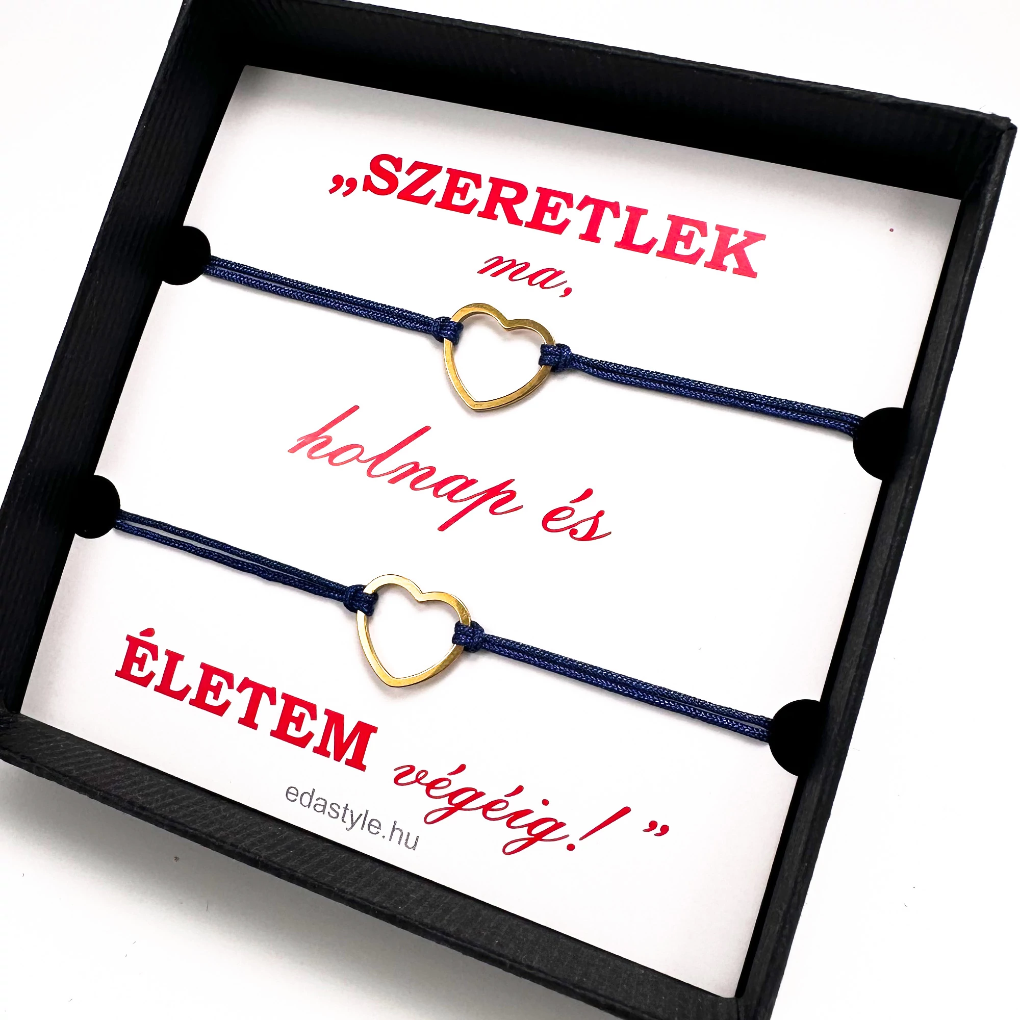 Páros zsineg karkötő arany szív medállal Kék