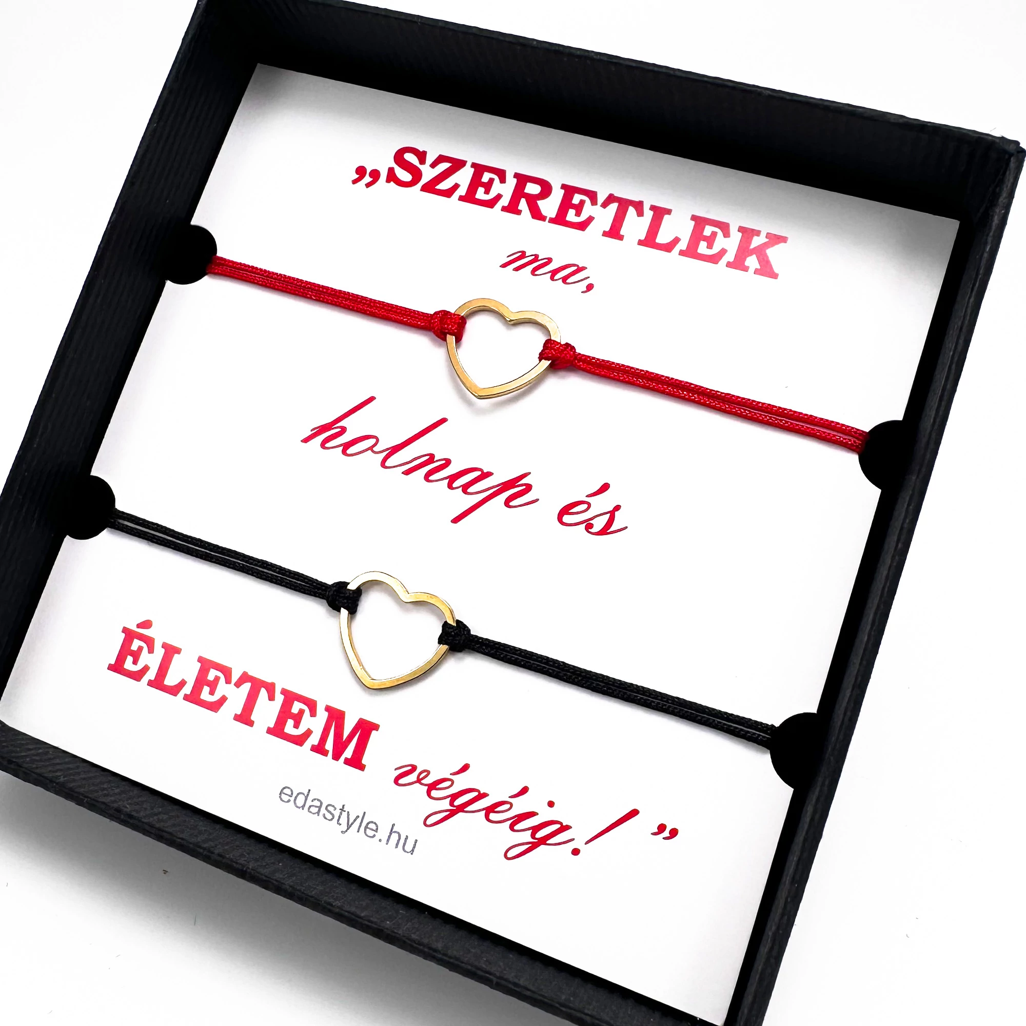 Páros zsineg karkötő arany szív medállal Piros-Fekete