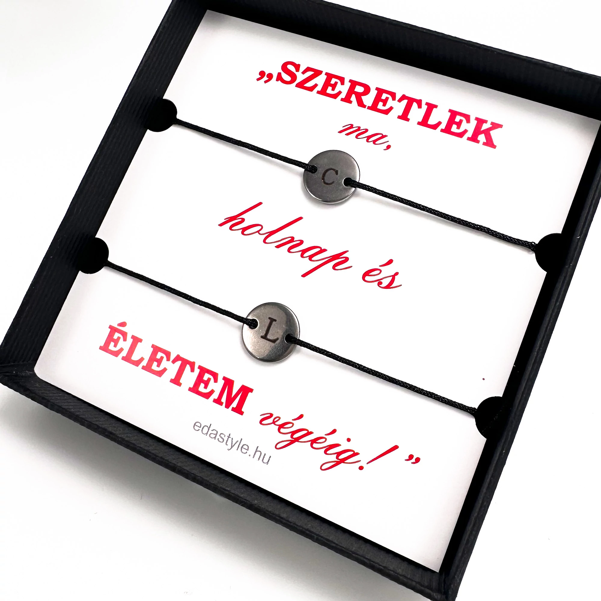 Ez a megható ajándék garantáltan megérinti a párod szívét. Kifejezi azt az örömöt és boldogságot, amit az összetartozásotok jelent nektek. Tedd még egyedibbé és válaszd ki a legördülő modulban a medálon szereplő betűket! |