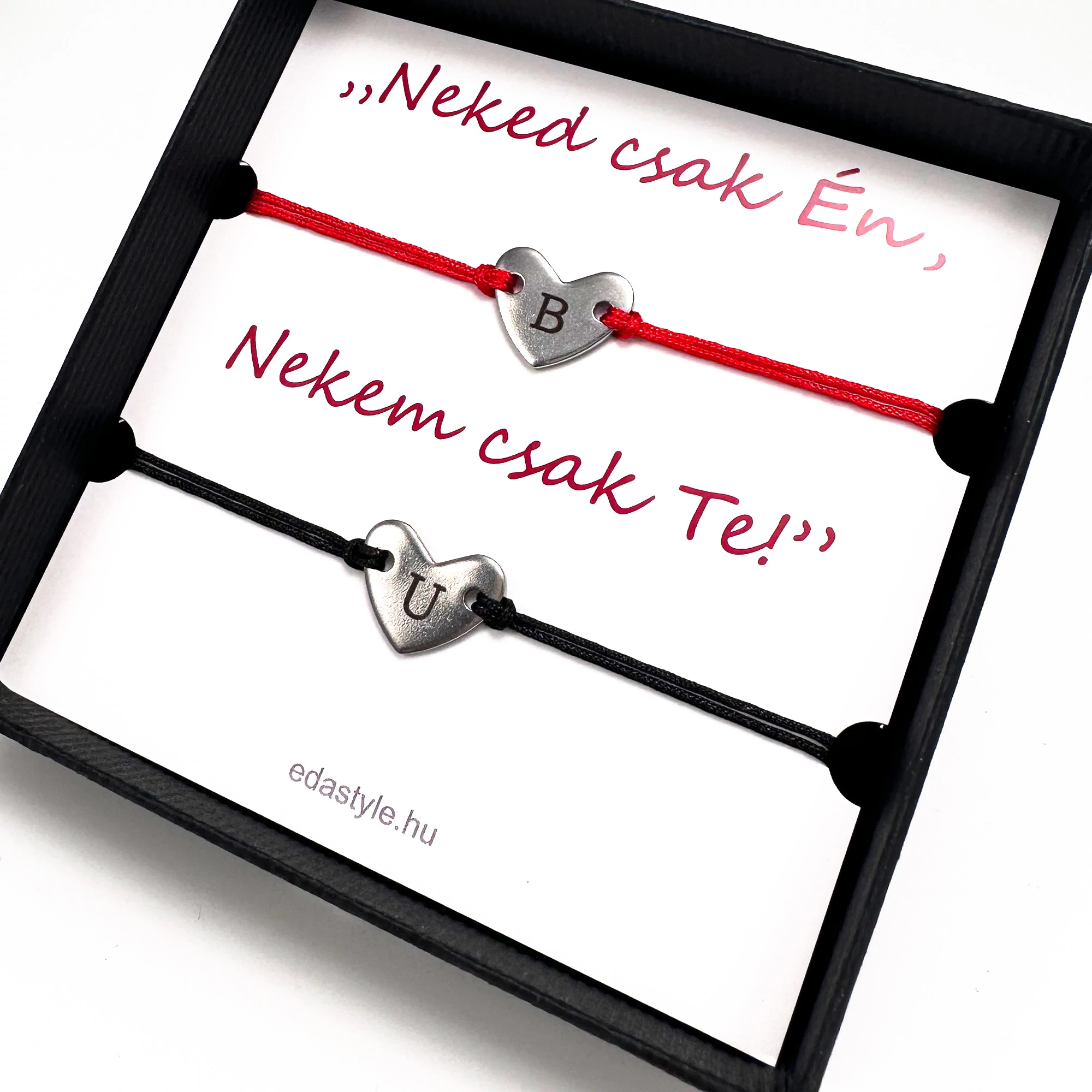 Páros karkötő gravírozható szív medállal Piros-Fekete